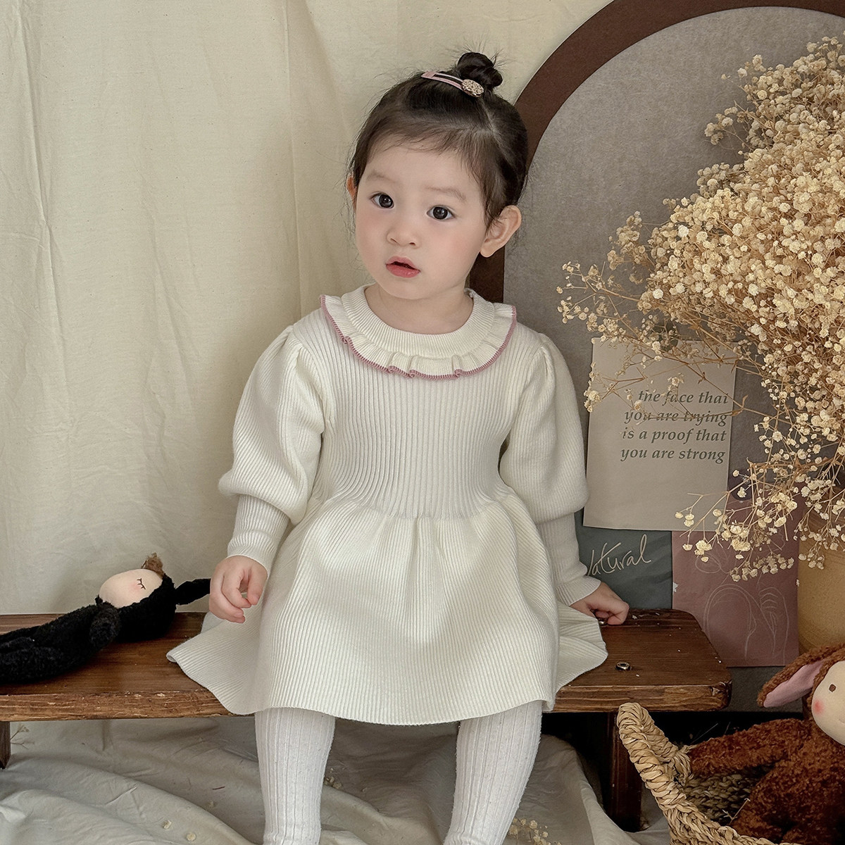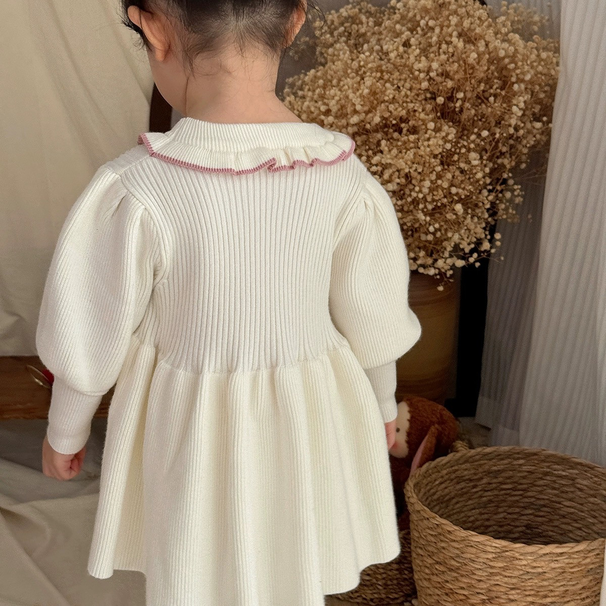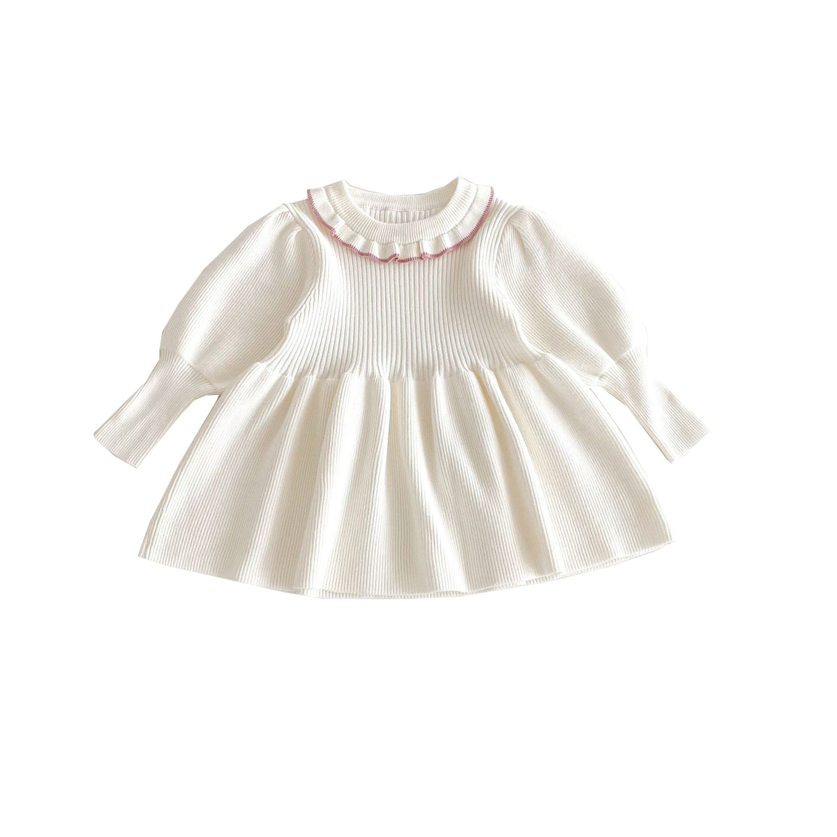 女童毛衣裙内搭针织连衣裙女宝宝洋气公主裙冬季灯笼袖百搭小裙子
