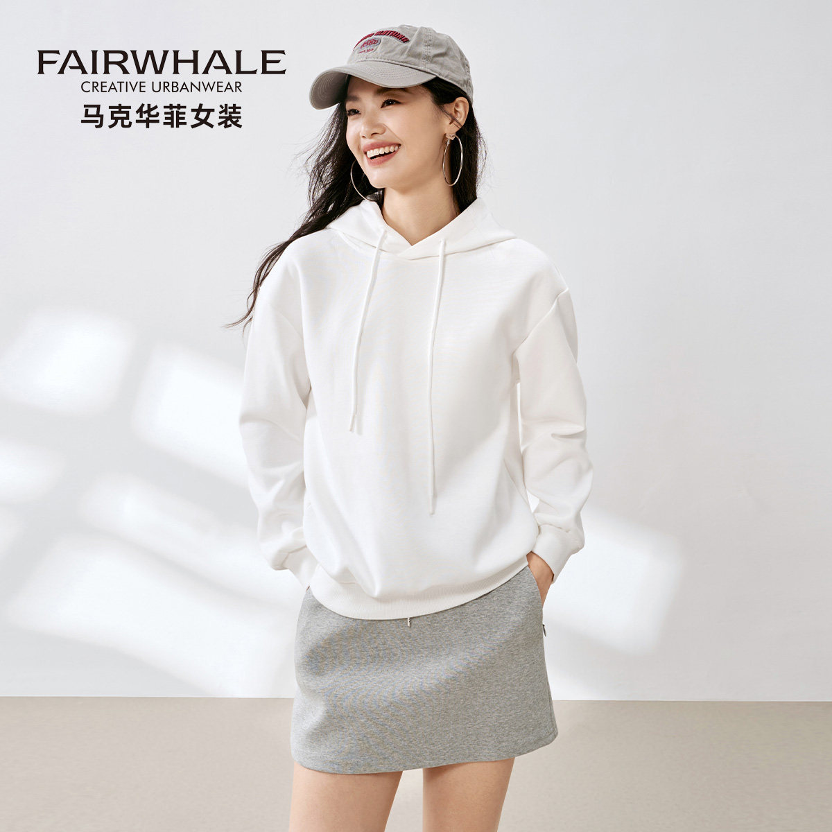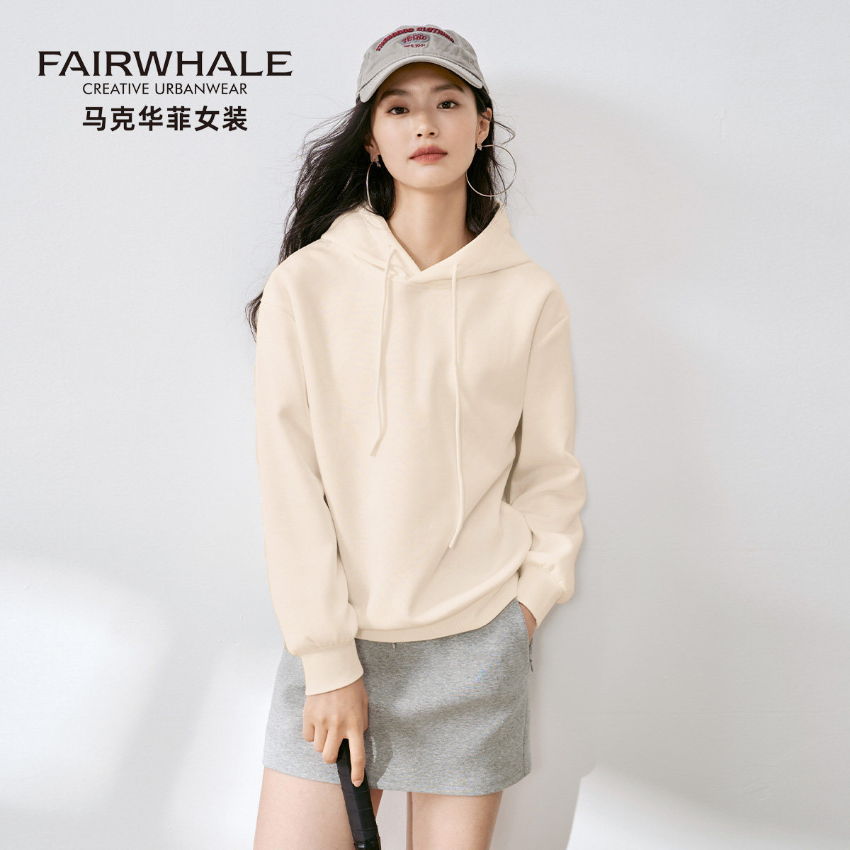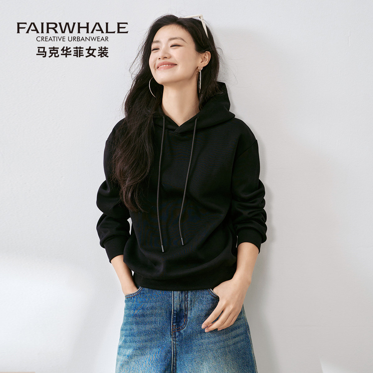 马克华菲卫衣女款2026新款春秋季连帽宽松休闲纯色上衣小个子外套