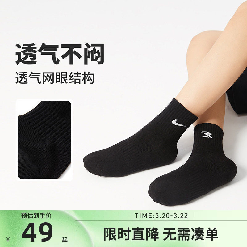 Nike 3brand袜子夏季薄款中筒袜男女童棉袜透气散热长袜3双装宝宝
