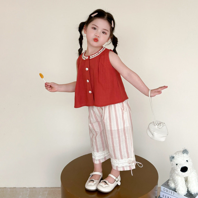 儿童夏季洋气背心女童夏装套装2025新款女孩宝宝夏日时髦薄款衣服