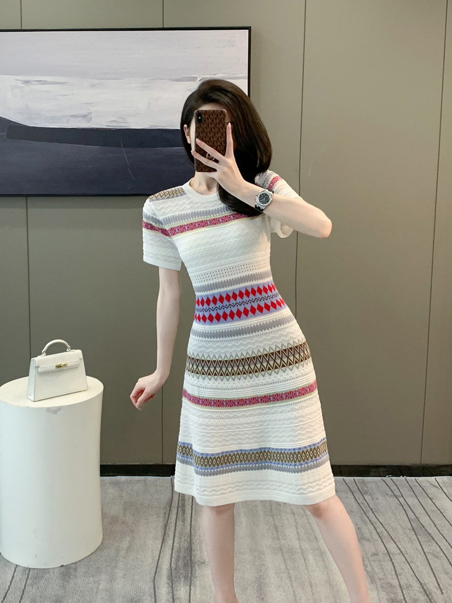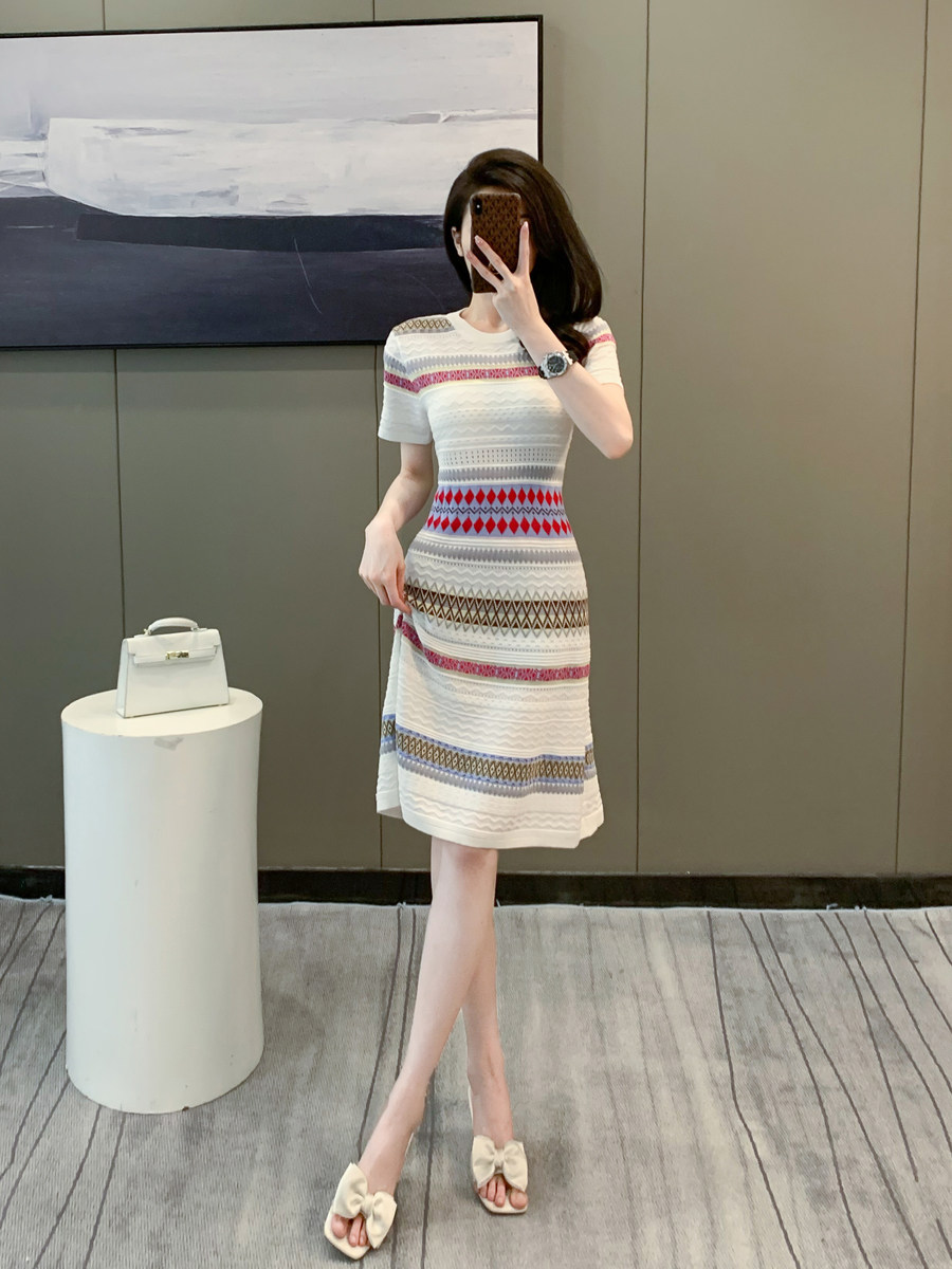 小香风连衣裙2026新款女小个子高级感轻奢名媛冰丝针织短袖裙子夏