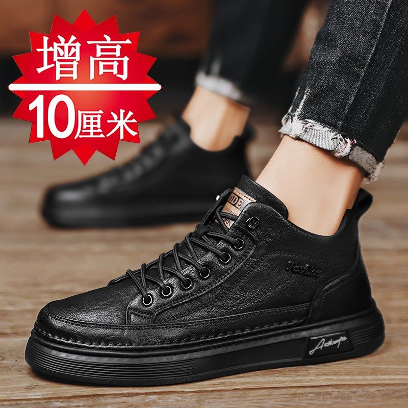 男鞋夏季内增高8cm6cm马丁男士休闲皮鞋软底黑色板鞋增高鞋男10cm