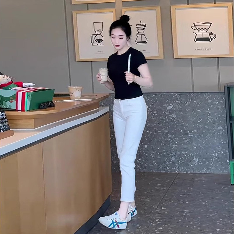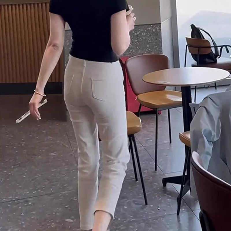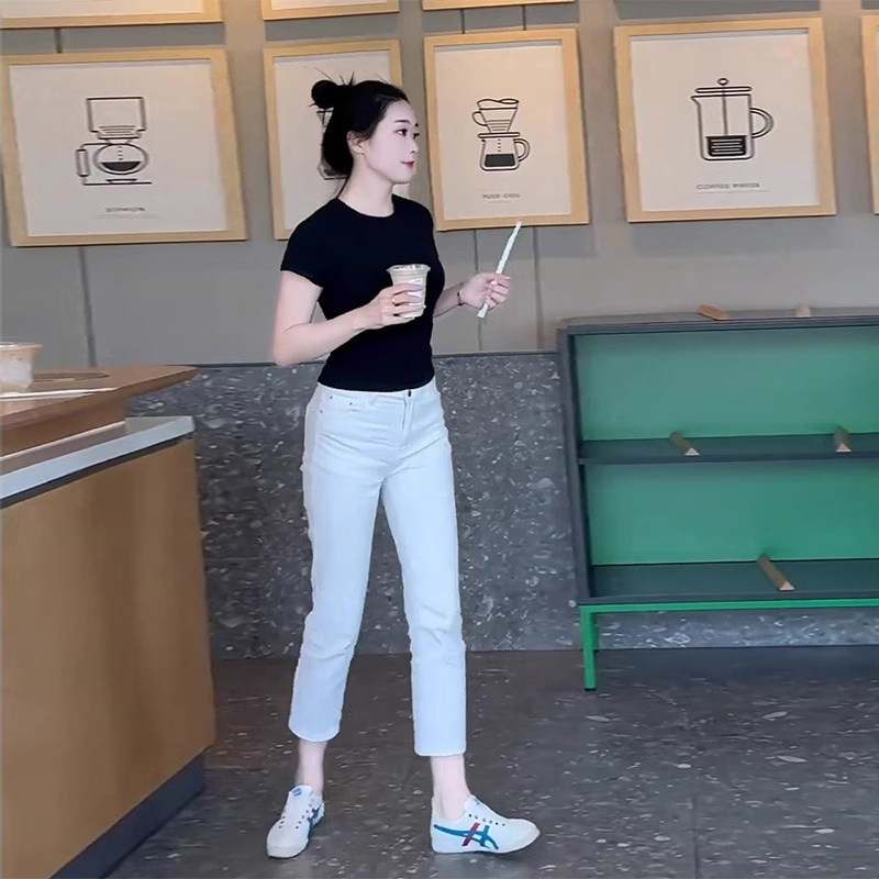 白色直筒牛仔裤女夏季薄款2026新款八分小个子九分窄版烟管法棍裤
