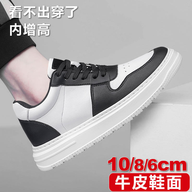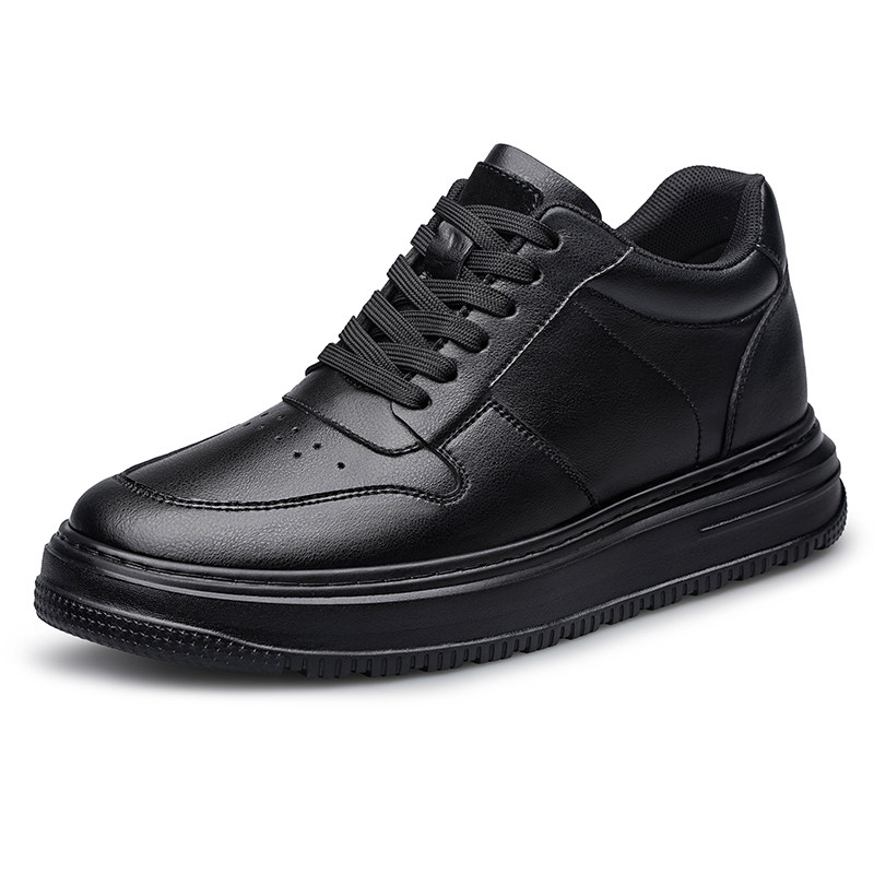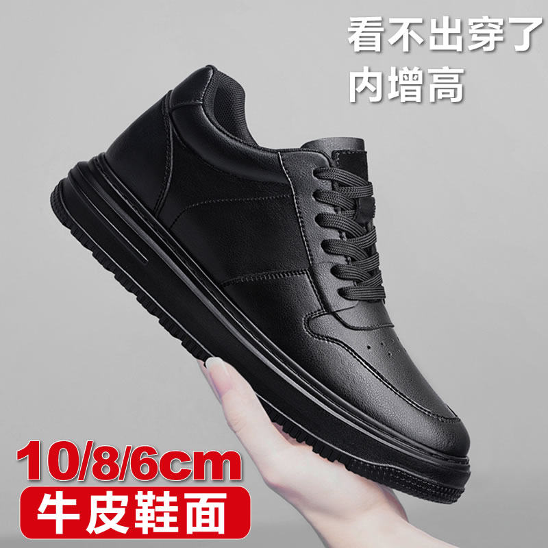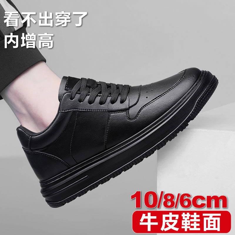全黑色潮牌真牛皮厚底男士鞋空军版型高端内增高10cm8cm运动休闲