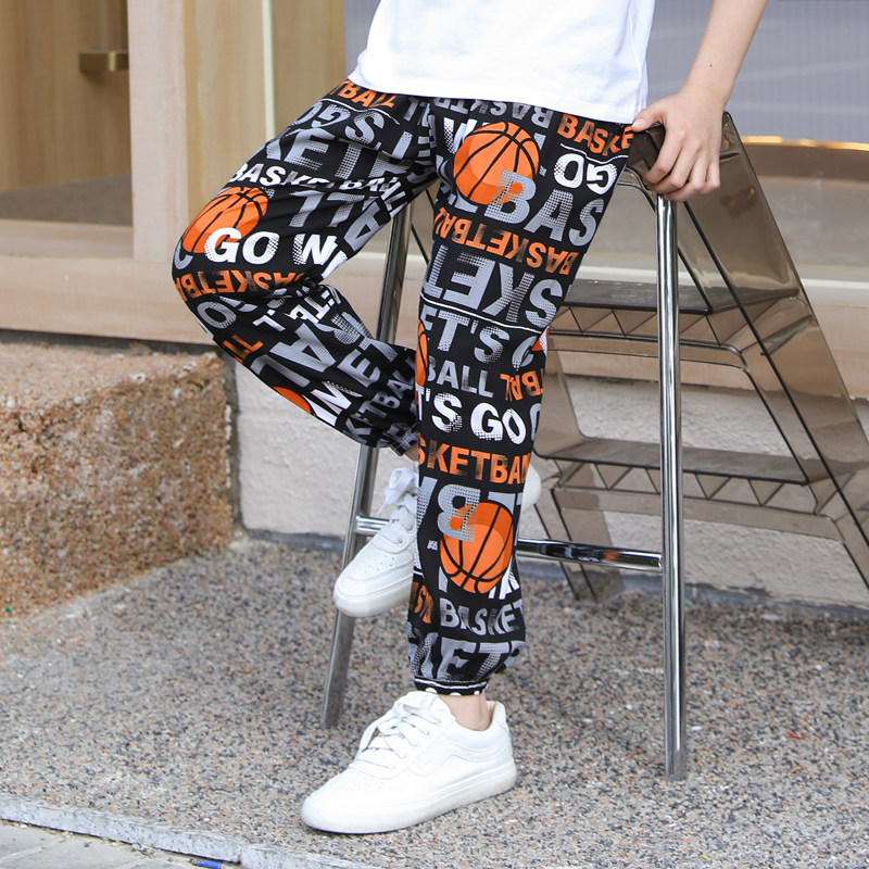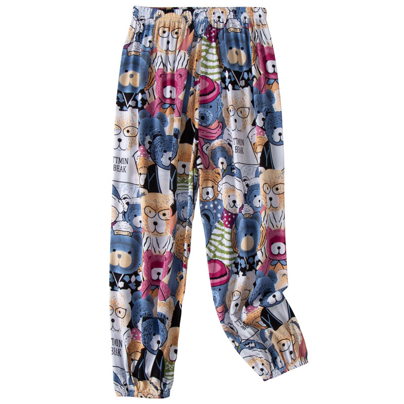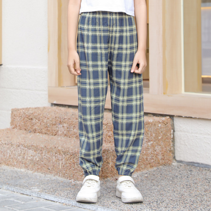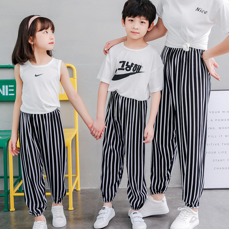 夏季儿童防蚊裤男童棉绸裤子外穿女童女宝男宝男孩冰丝人造棉睡裤