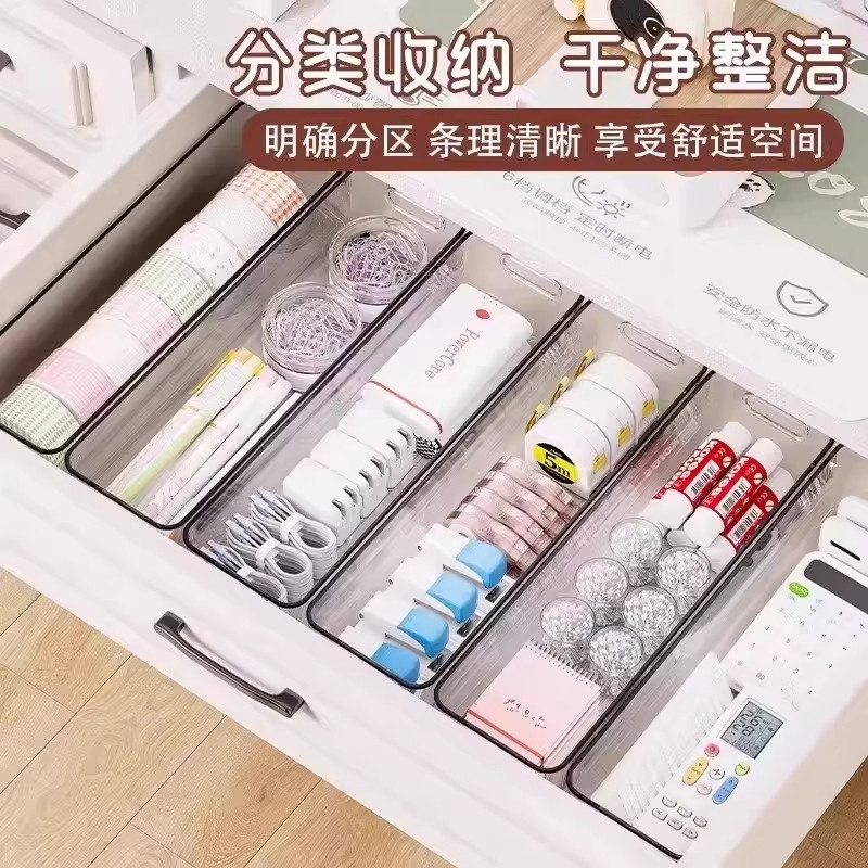 桌面收纳盒长条窄长型长方形亚克力透明杂物袜子小物件抽屉分隔盒