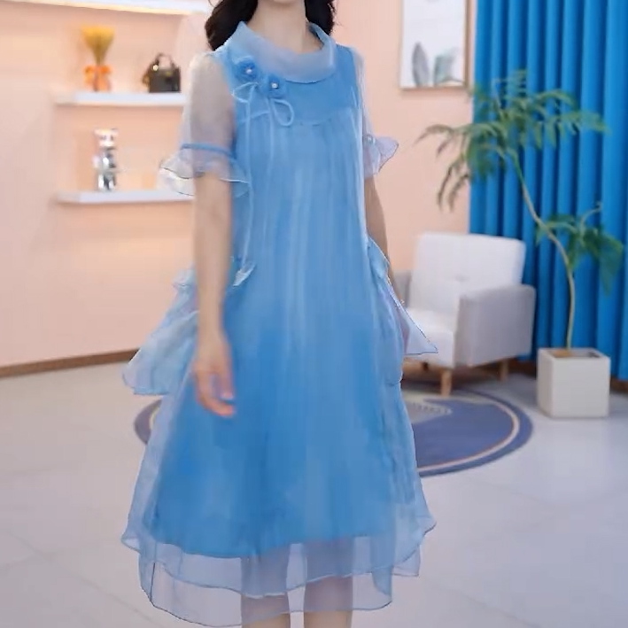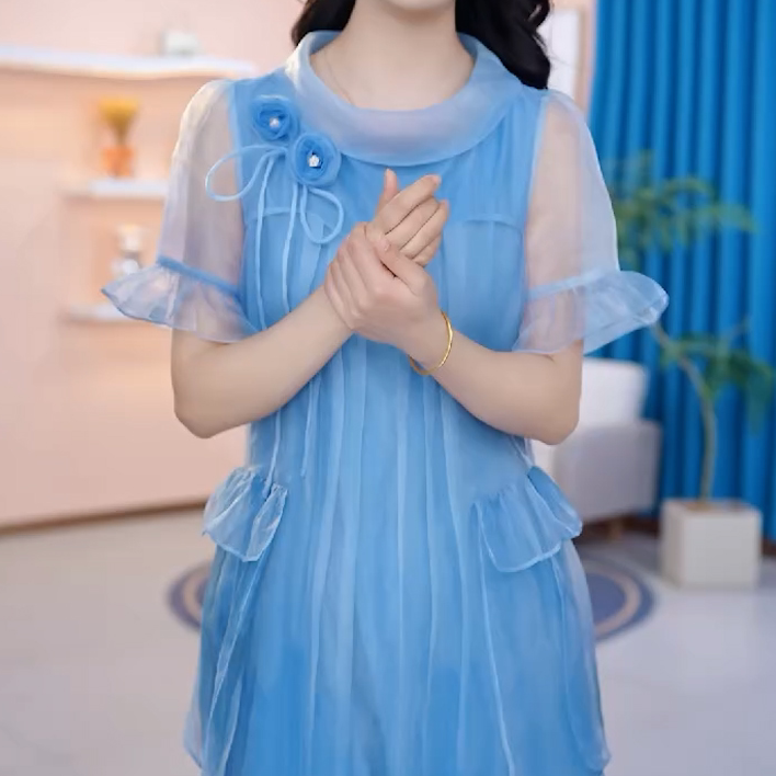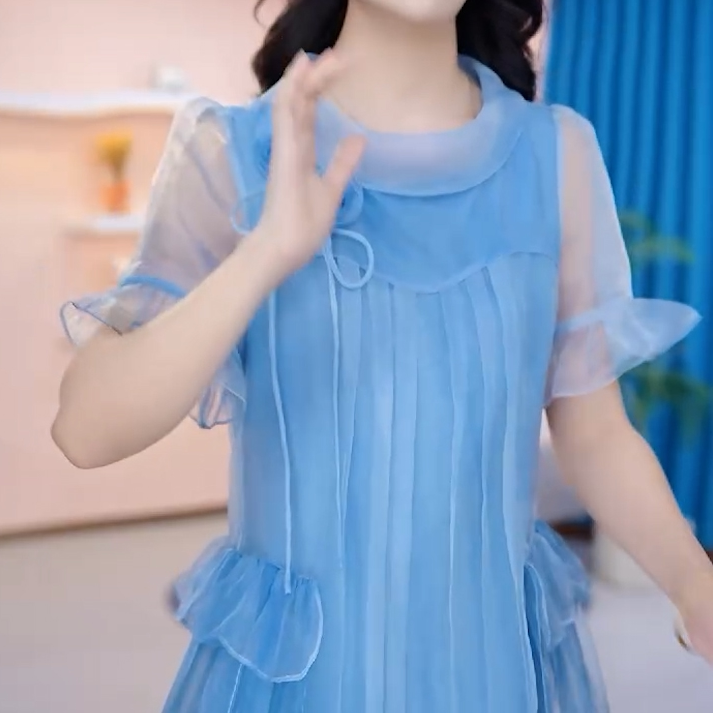 2026新款夏季蓝色连衣裙女今年流行爆款漂亮巨好看中年妈妈装裙子