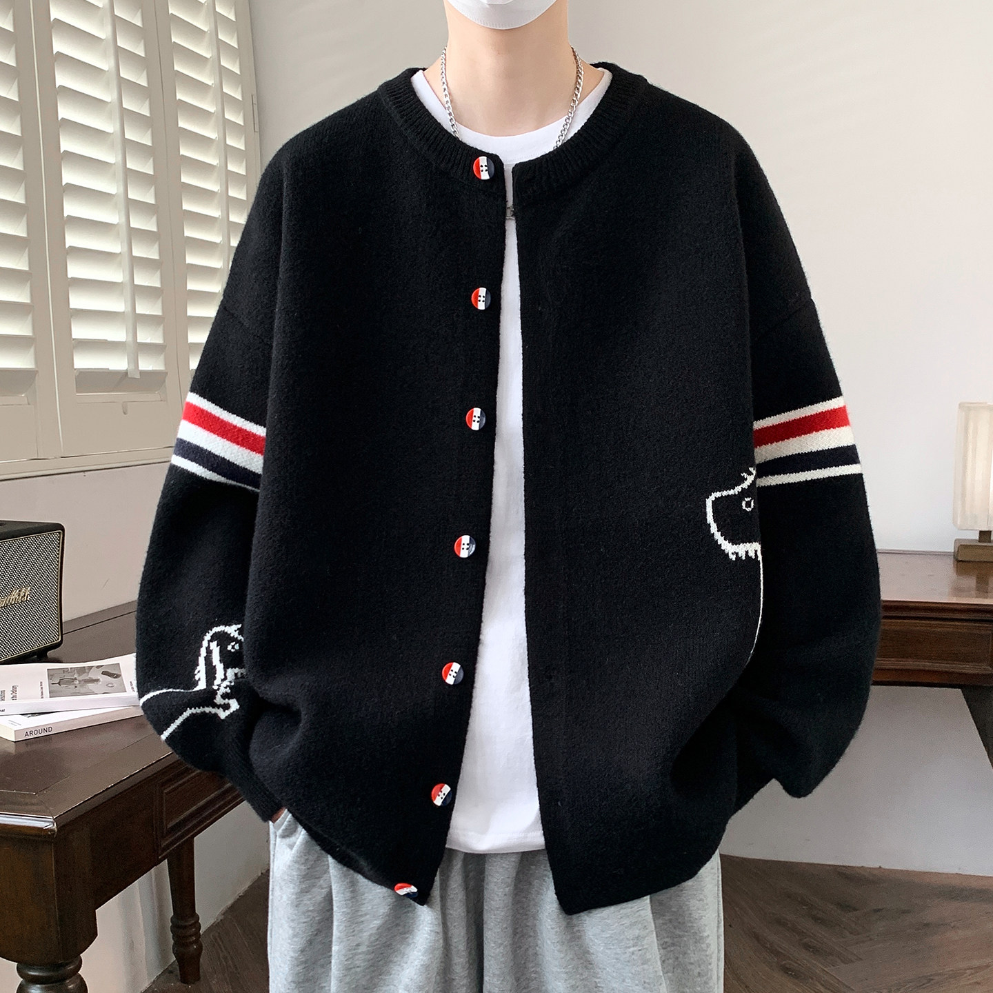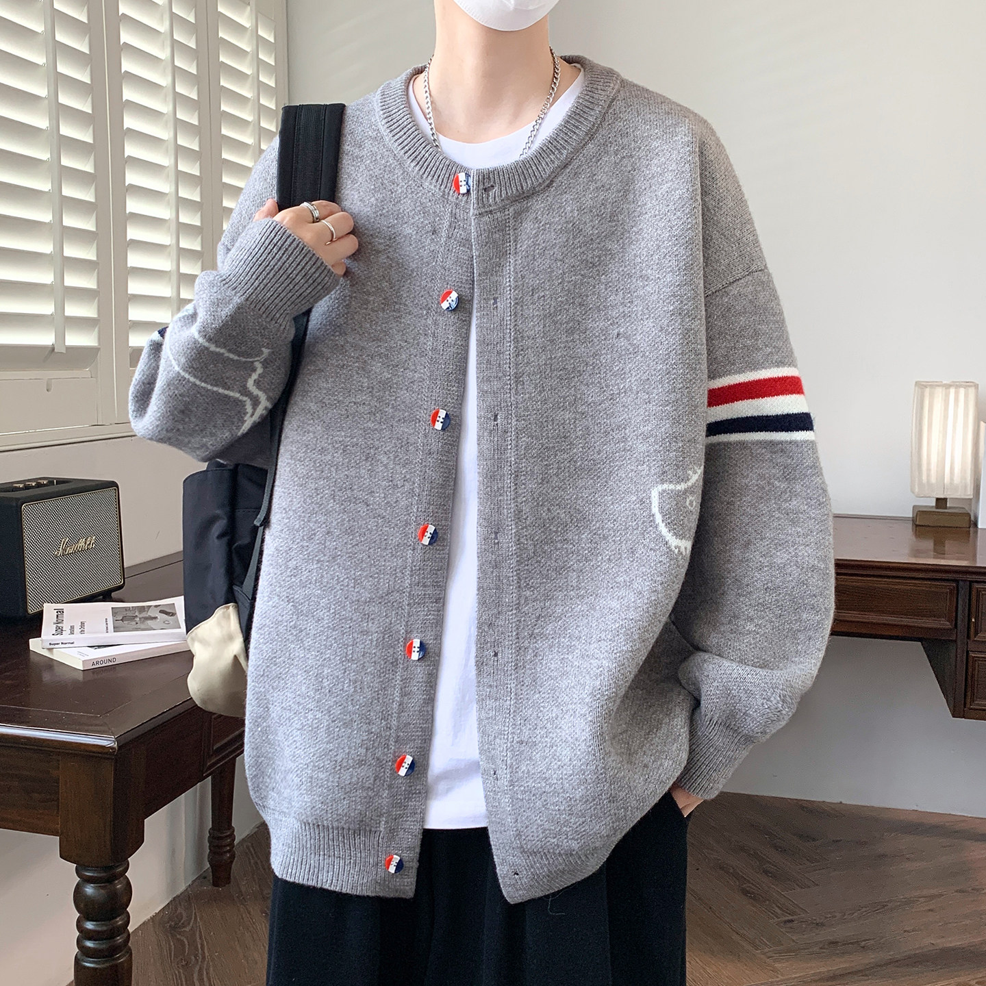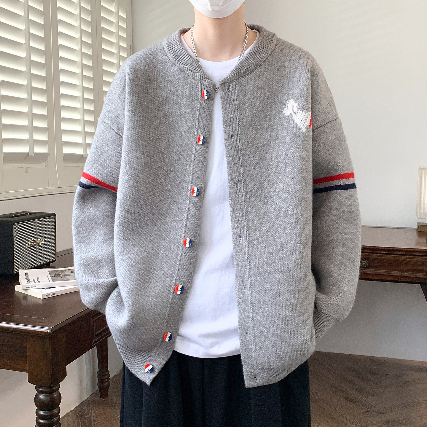 开衫毛衣男生秋冬季新款青少年大学生加厚保暖休闲针织外套男装士