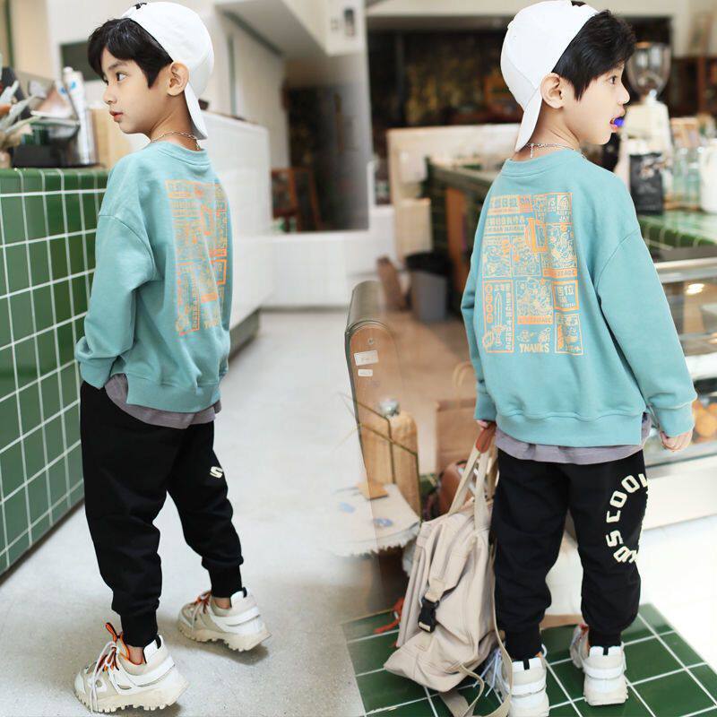 男童卫衣纯棉2024新款春装儿童衣服中大童春秋款帅气假两件上衣潮