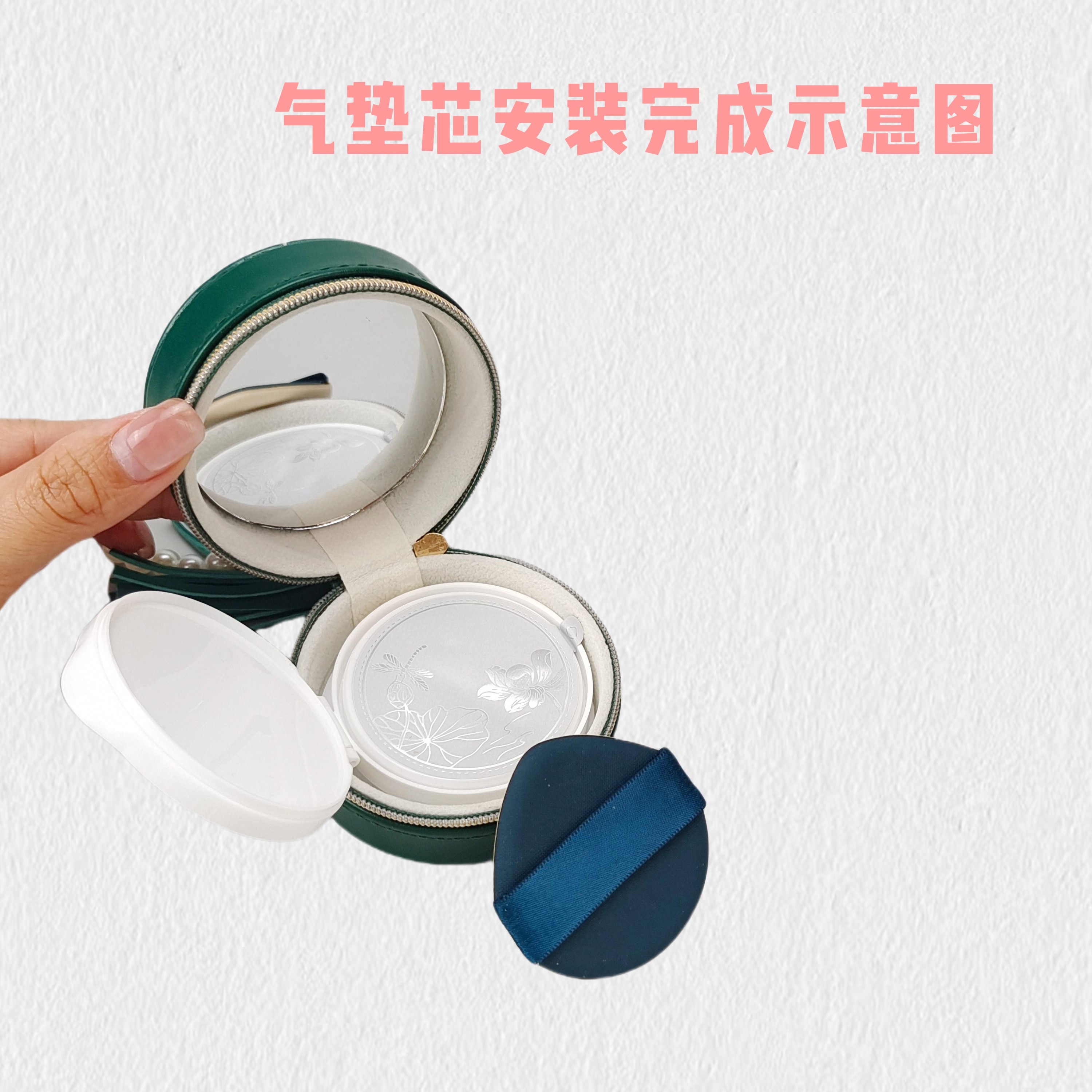 适用6.7CM内高级皮革带镜气垫替换芯内胆外壳通用收纳空盒便携壳