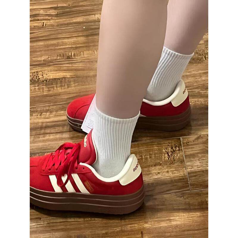 阿迪达斯adidasT头鞋女鞋厚底红色德训鞋休闲时尚板鞋 KJ6852