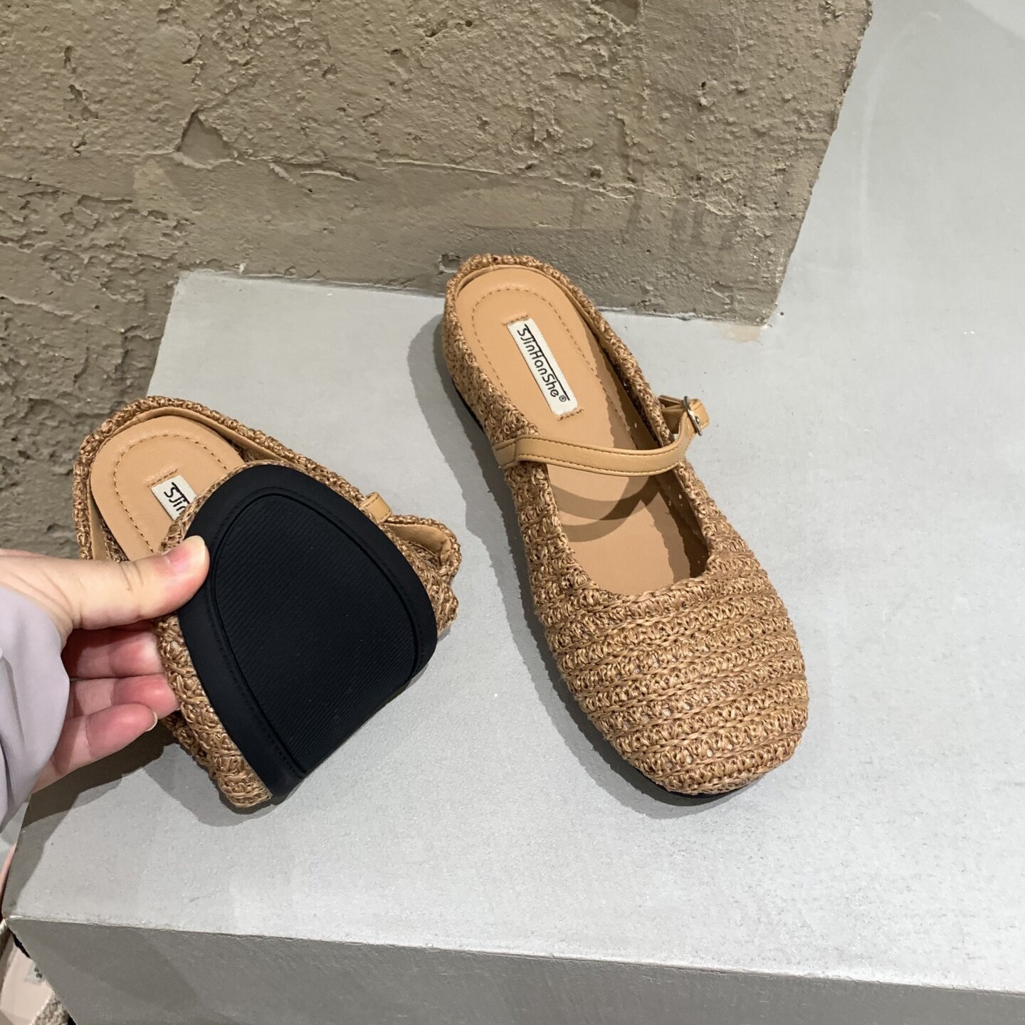 晚晚风坡跟编织波西米亚勃肯鞋女外穿2026夏季配裙子包头半拖凉鞋