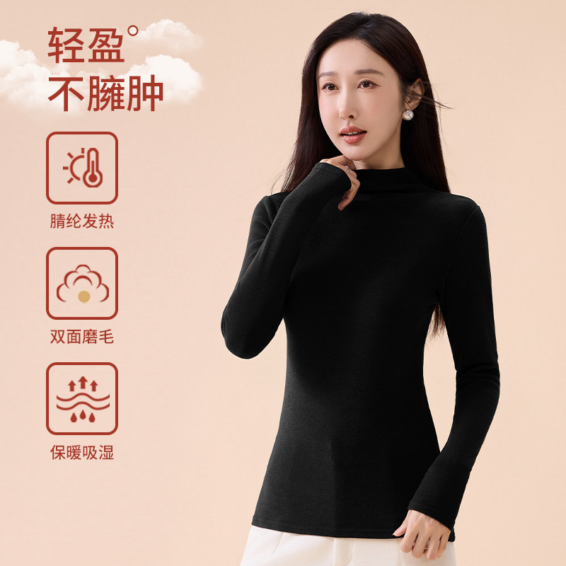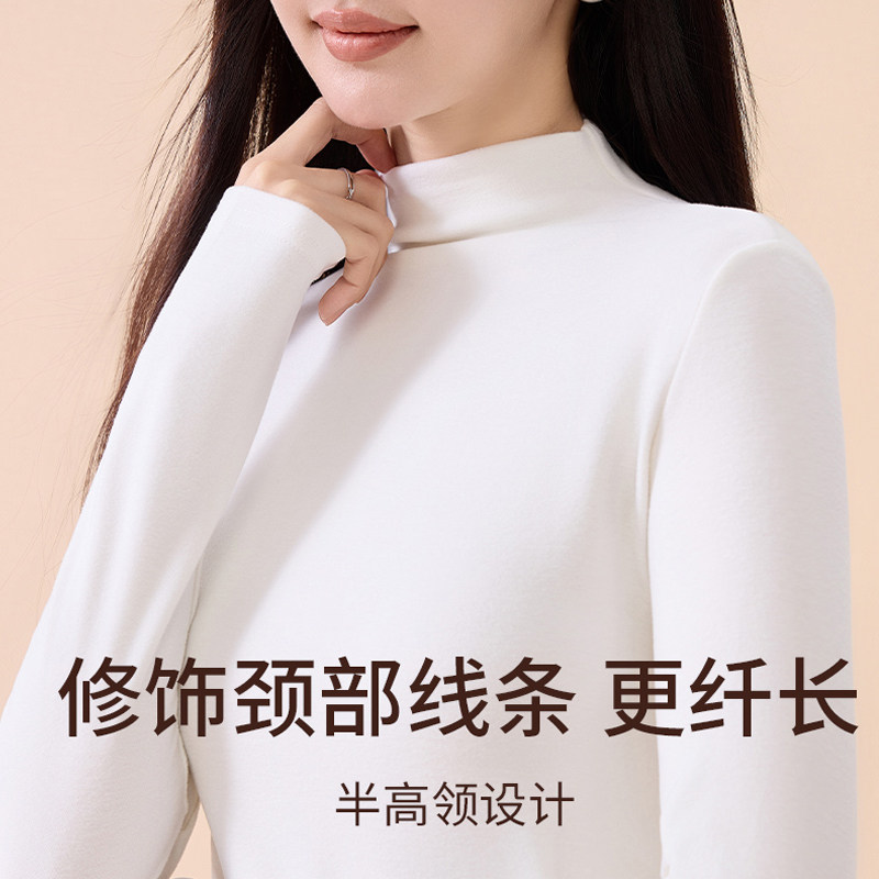 白色纯棉长袖上衣加厚德绒修身T恤女秋冬季内搭可外穿高领打底衫