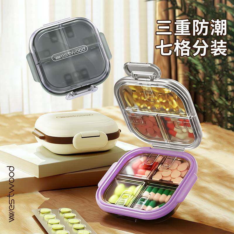 便携式7天避光药盒密封防潮7格小药盒一周分装随身药品分装收纳盒