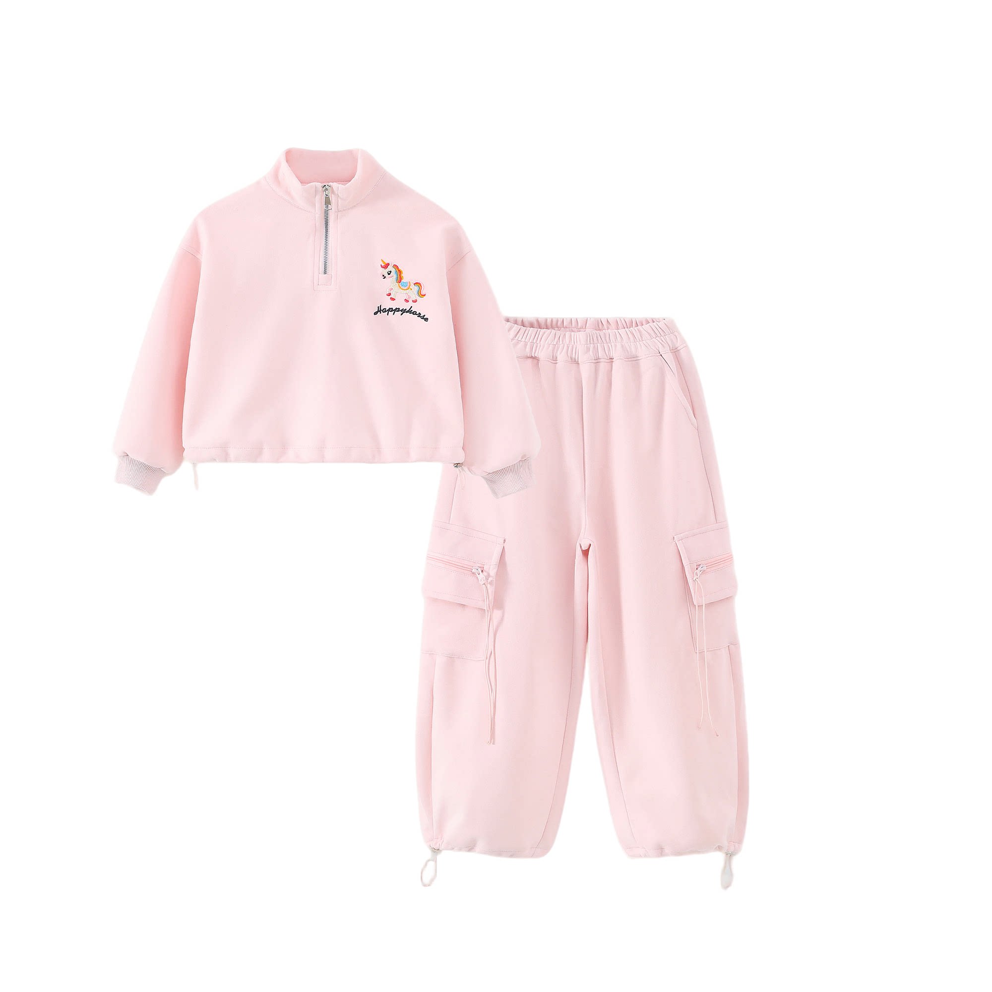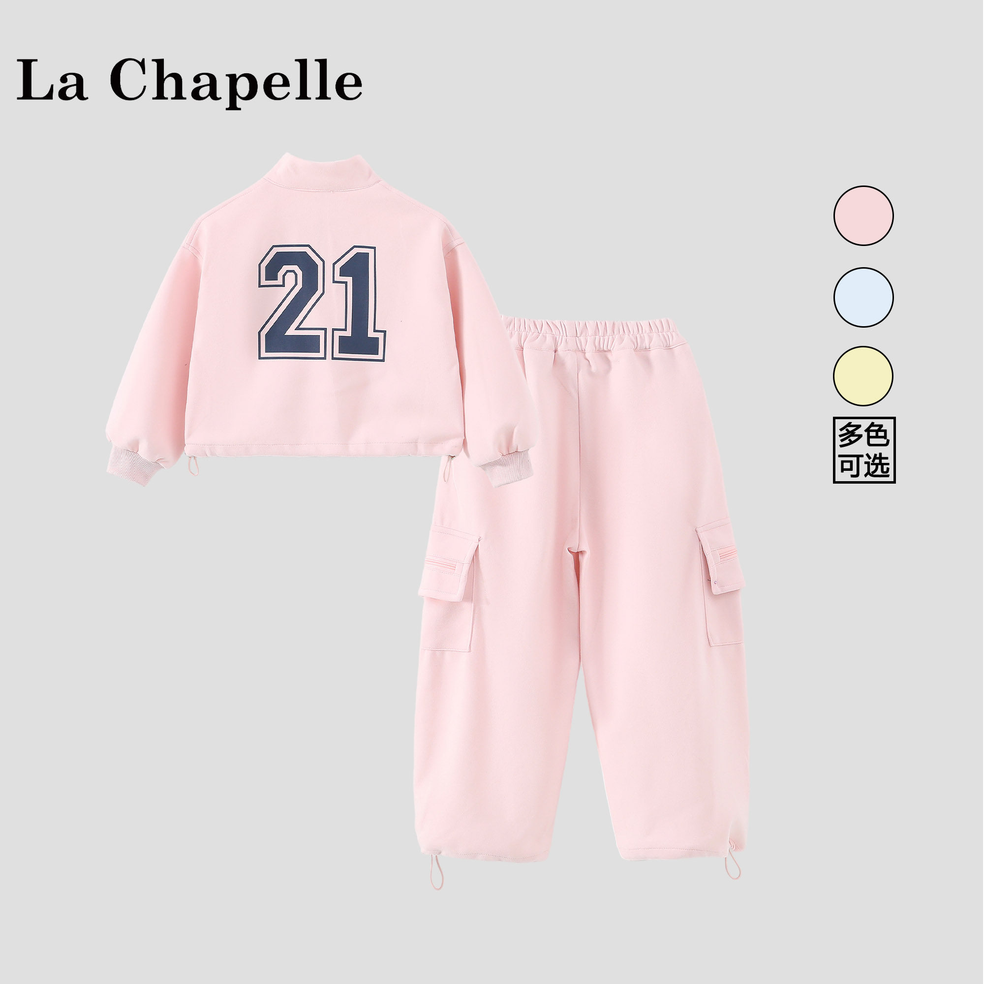 拉夏贝尔女童春装套装2026新款儿童运动装女孩粉色卫衣裤子两件套