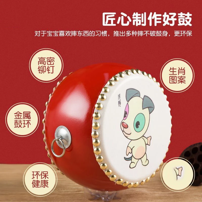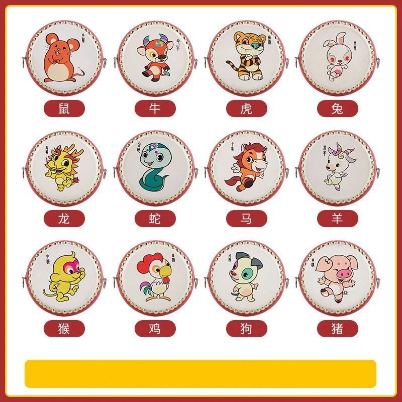 儿童耐用十二生肖牛皮鼓玩具早教摆摊幼儿园小鼓敲锣打鼓鼓面拍鼓