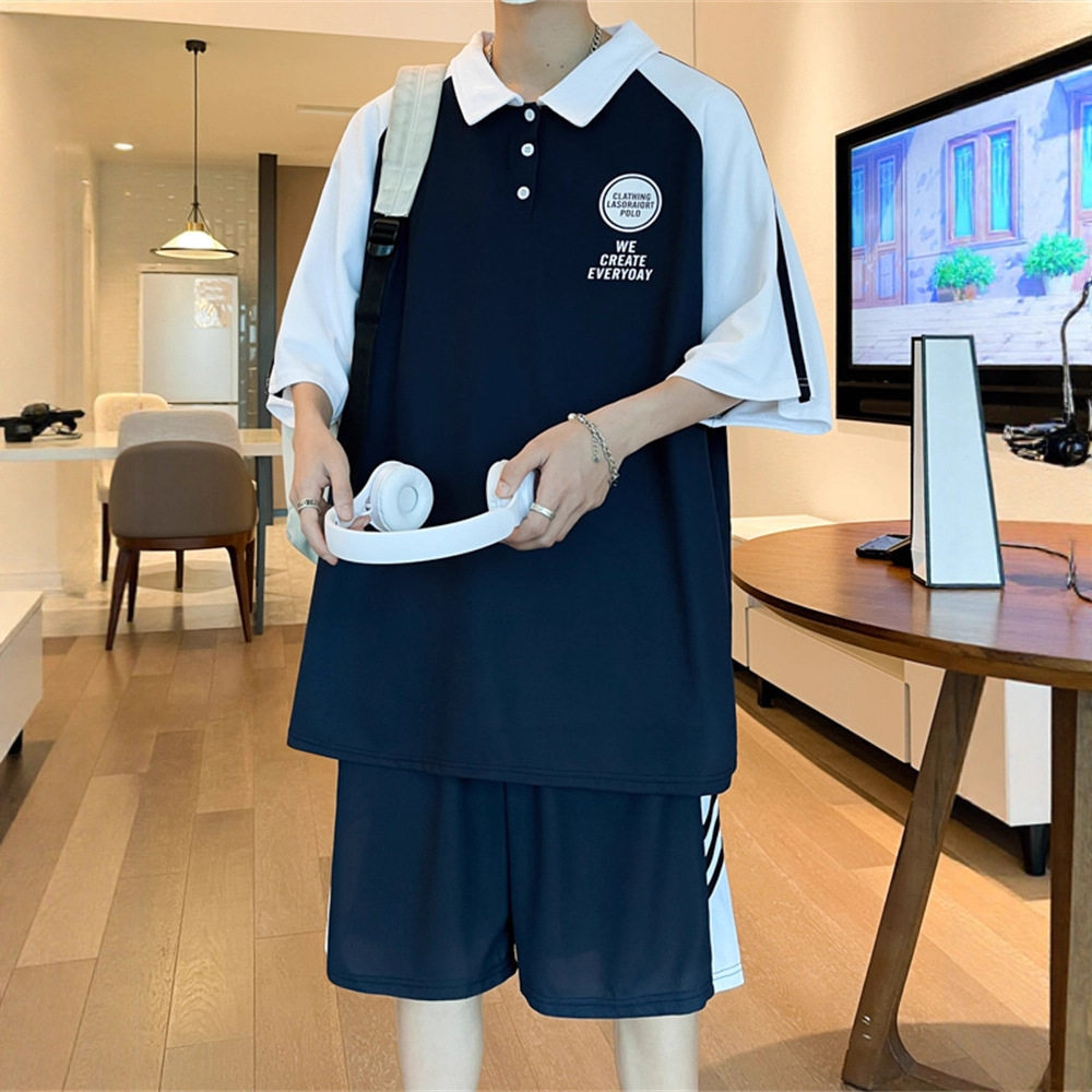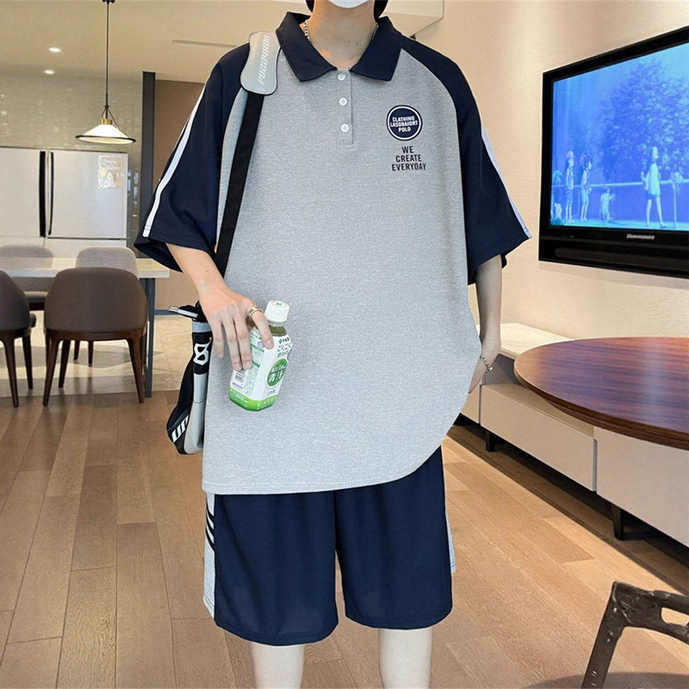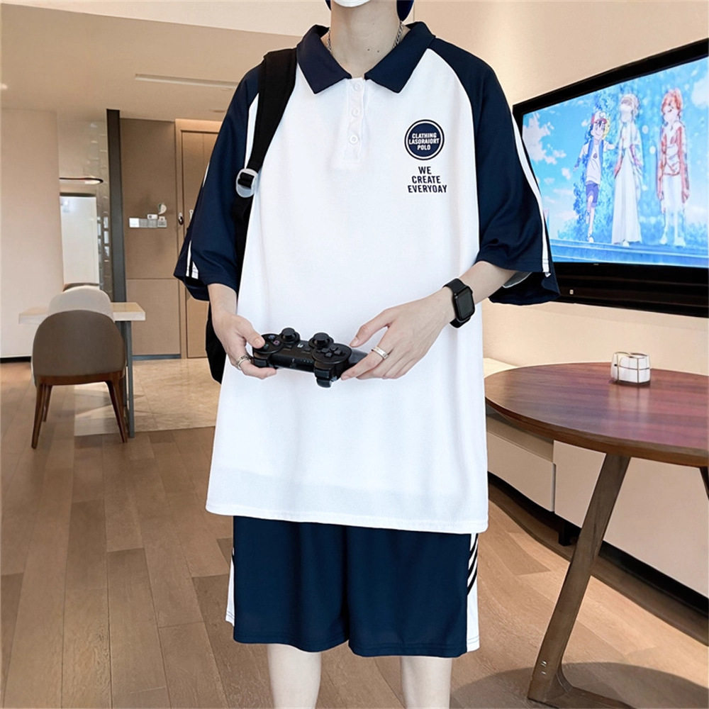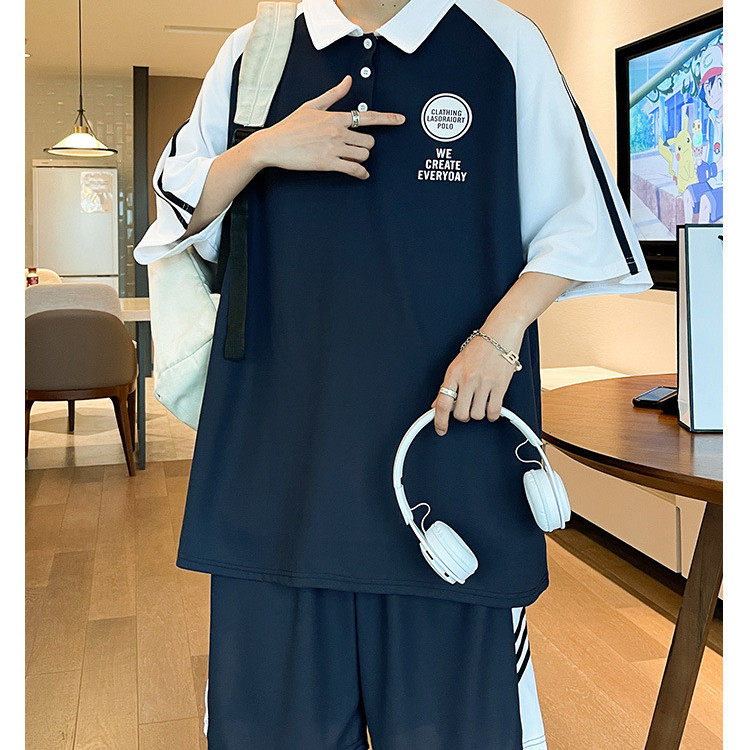 夏季短袖t恤男孩初高中学生潮流帅气POLO衫青少年运动男装一套装