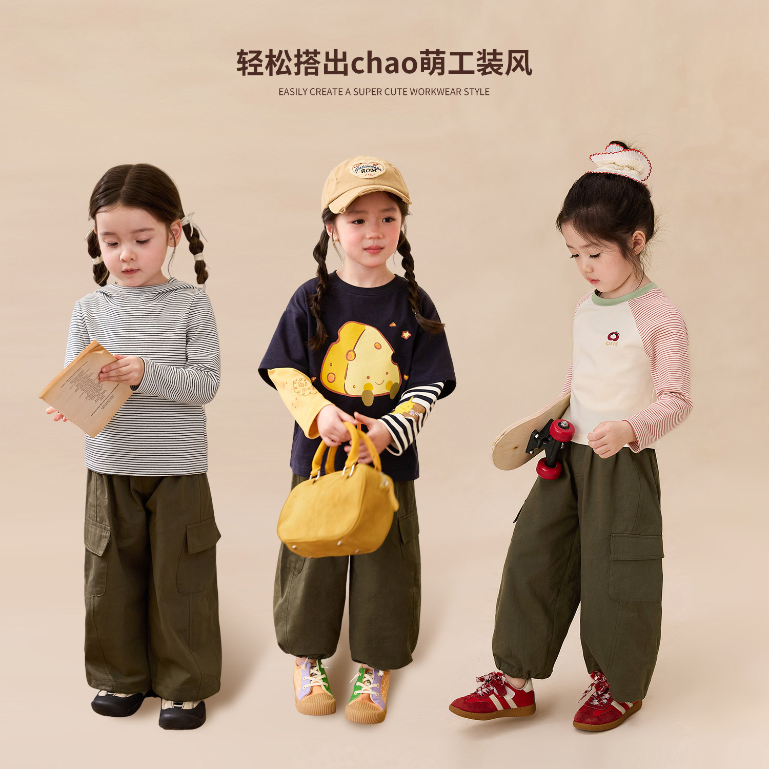 小O宝童装 宝宝工装裤女2026春装新款女童时髦阔腿休闲洋气裤子