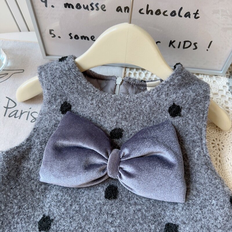 秋冬新款女童连衣裙儿童洋气时髦夹棉背心裙小女孩加厚毛呢公主裙