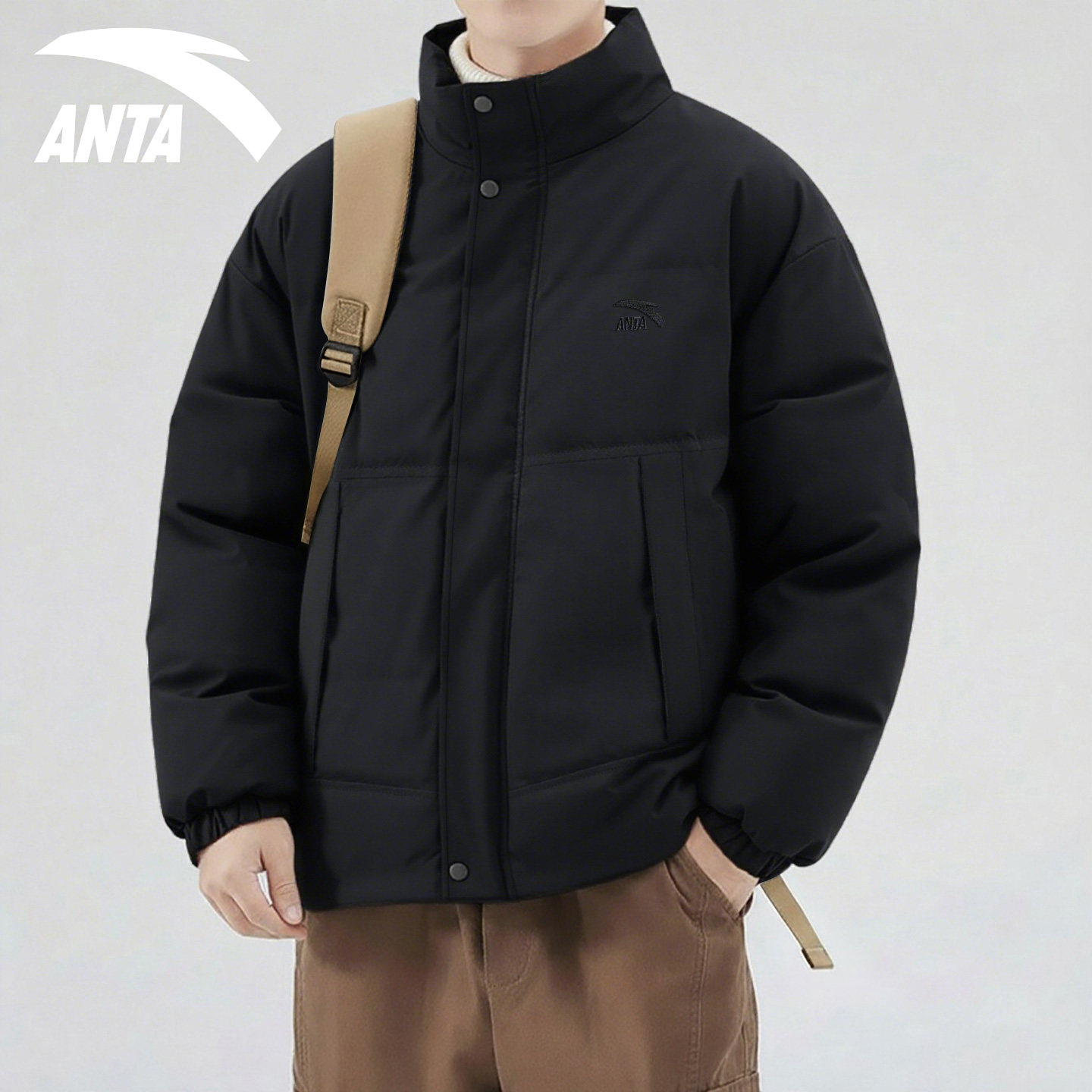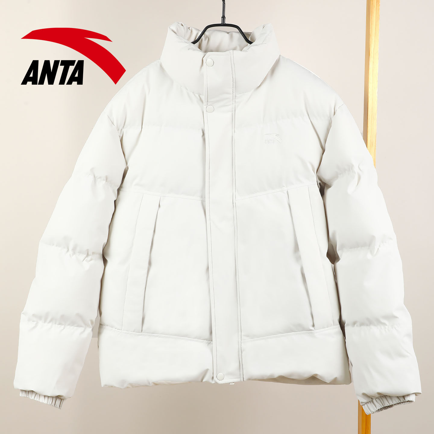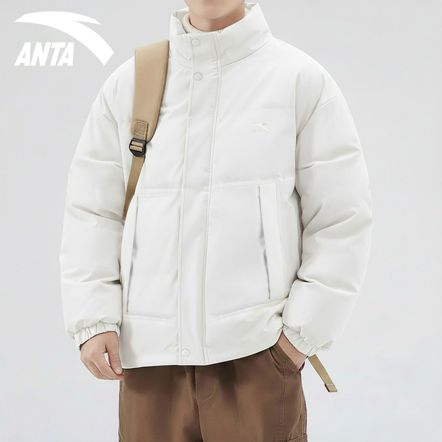 安踏棉服男款冬季加厚防泼水2026新款白色宽松立领保暖短款面包服