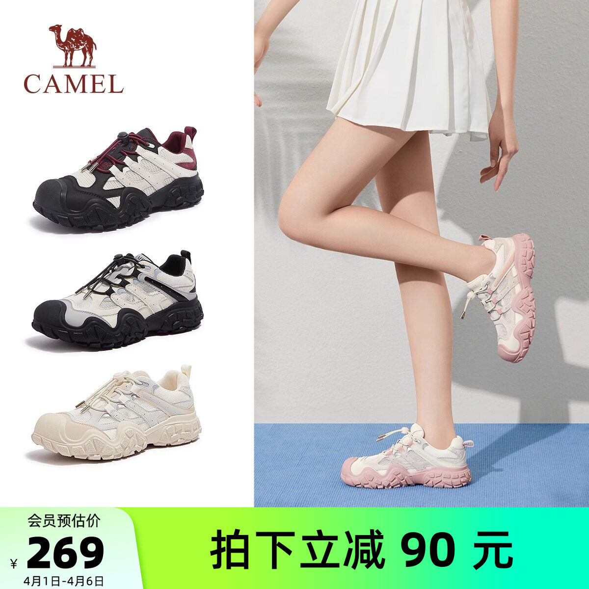 骆驼女鞋2026春季新款透气户外徒步黑色运动登山爬山跑步鞋丑萌鞋