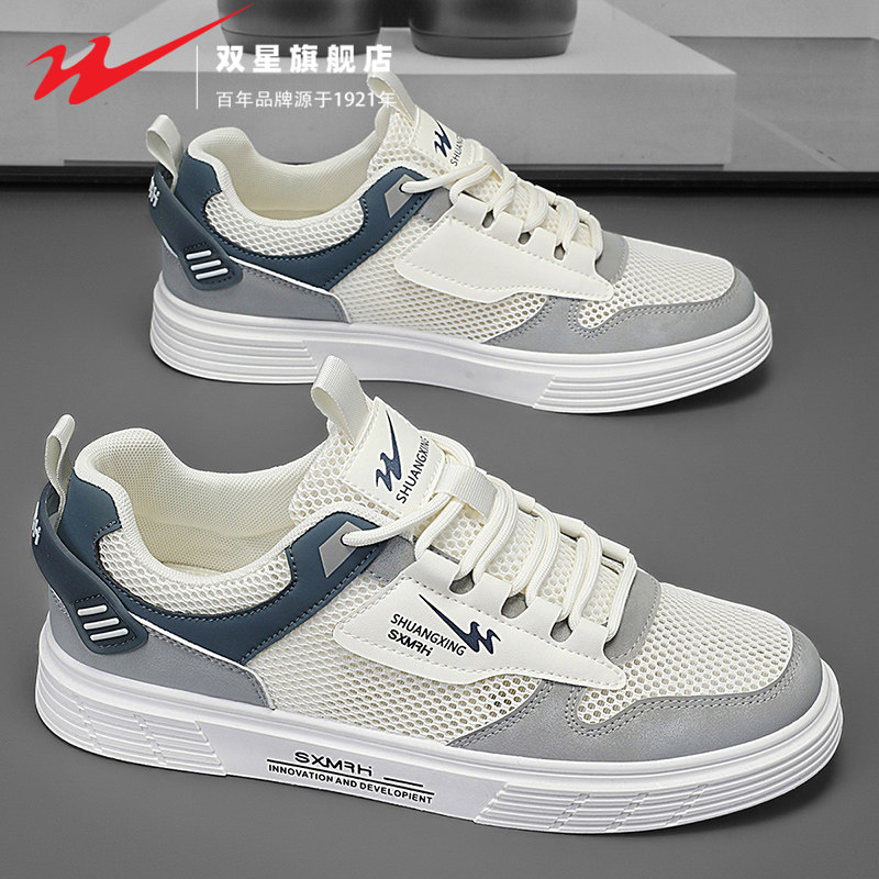 双星男鞋夏季透气防臭网面薄款网鞋韩版百搭休闲板鞋运动工作潮鞋