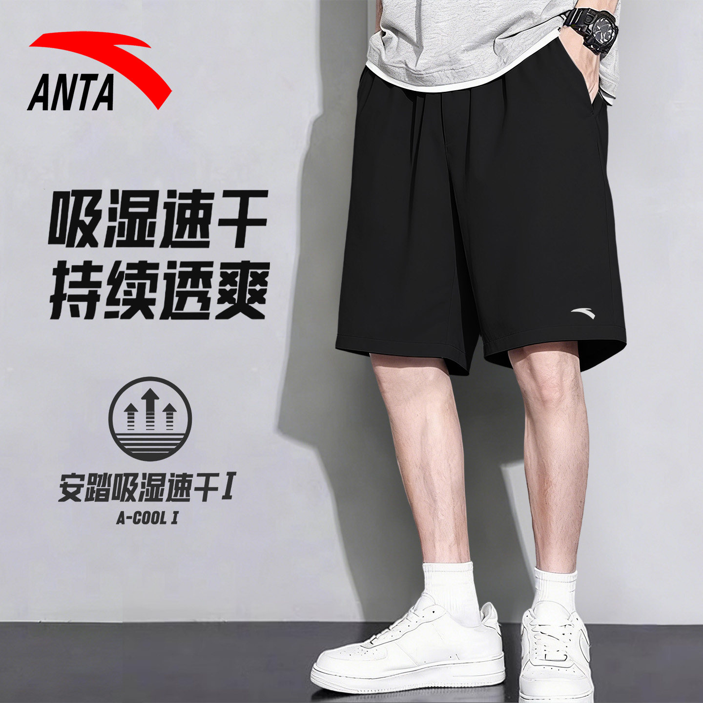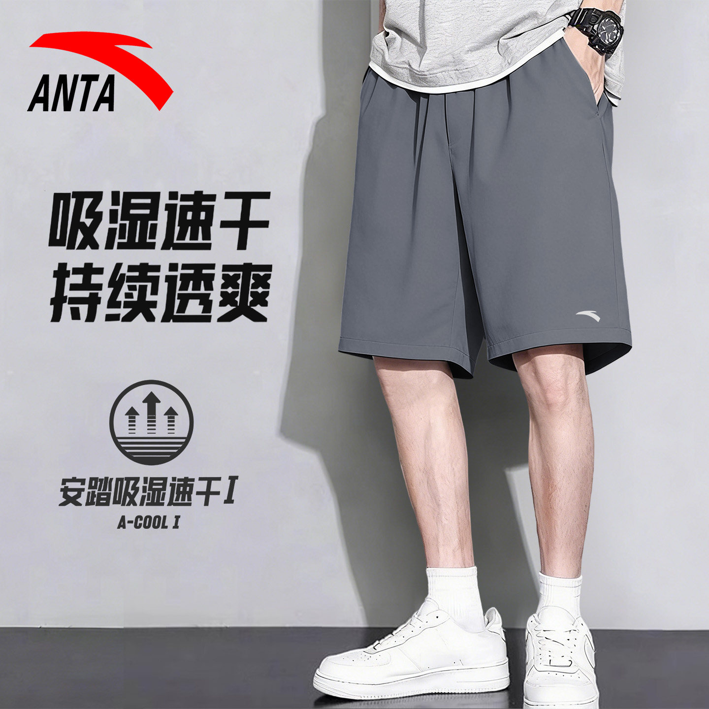 安踏速干短裤男五分裤2026新款睡裤男款冰丝梭织跑步裤薄款运动裤