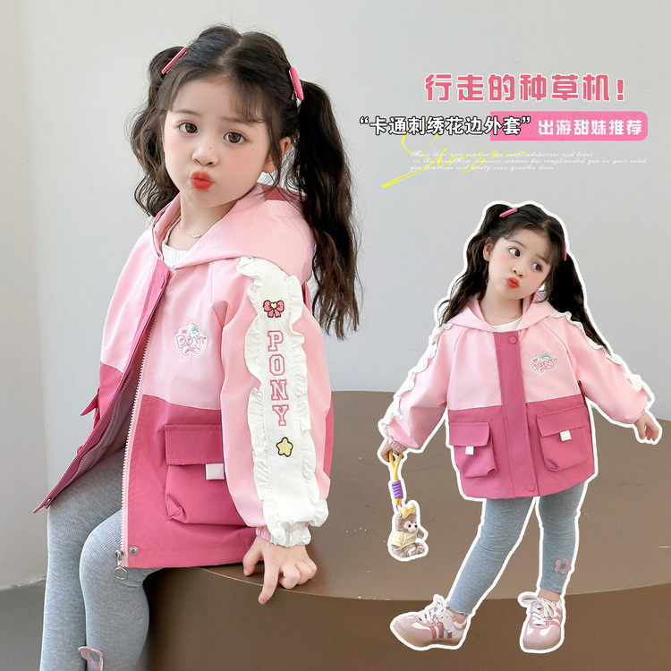 女童外套春装2026新款儿童秋季冲锋衣洋气韩版女孩春春款拼色上衣