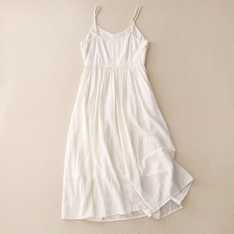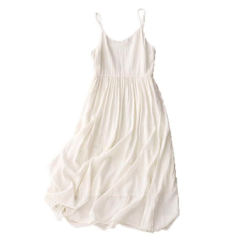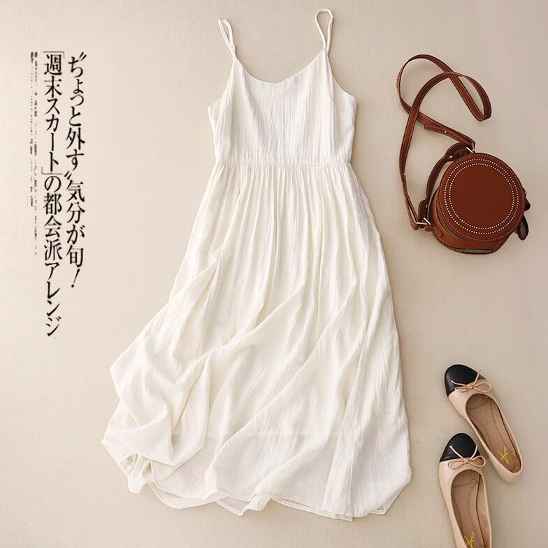 气质V领吊带连衣裙夏季女装2024新款小个子通勤百搭内搭白色裙子