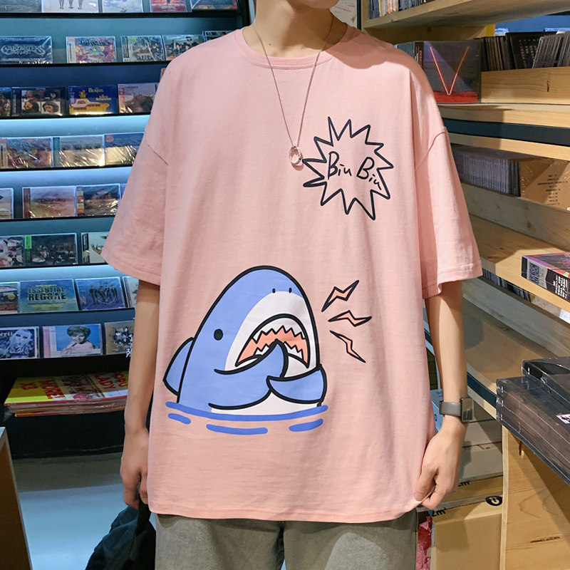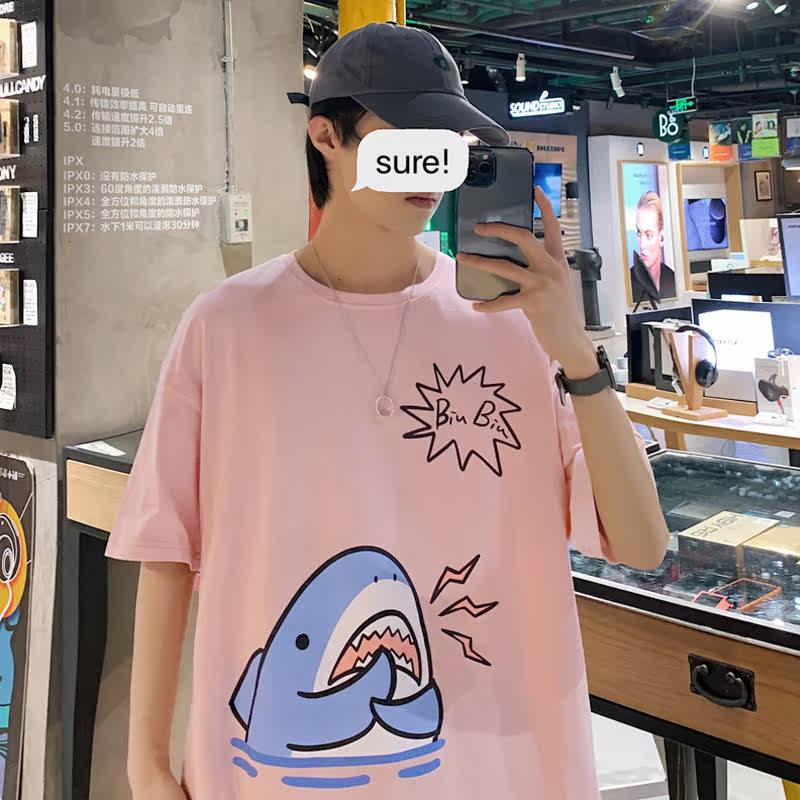 夏季大码青少年男生粉色短袖t恤男潮牌潮流初中高中学生上衣纯棉