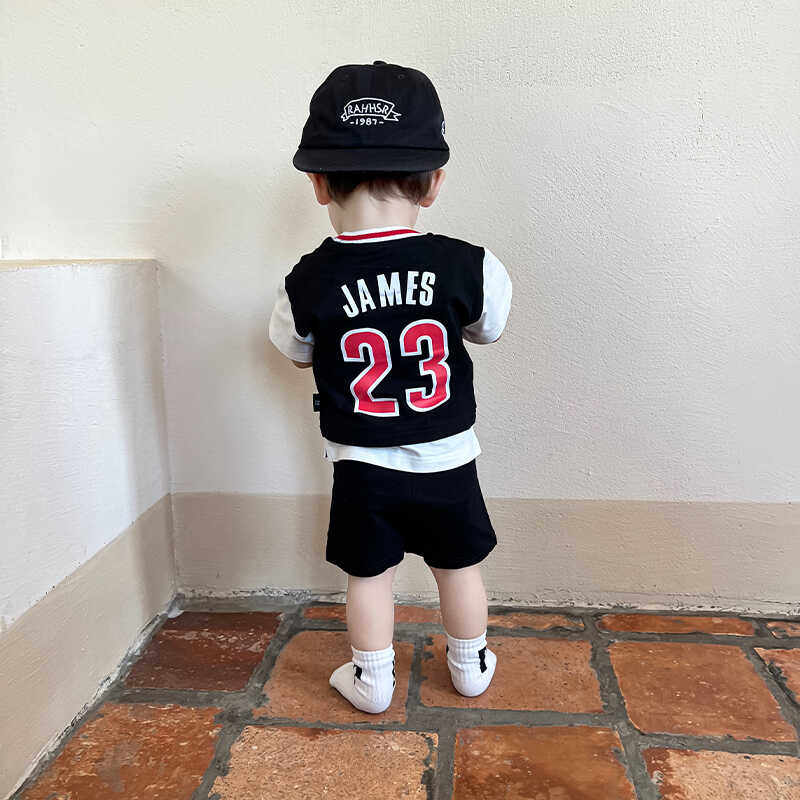 男童夏款分体套装运动服儿童两件套婴儿纯棉短袖T短裤洋气篮球服