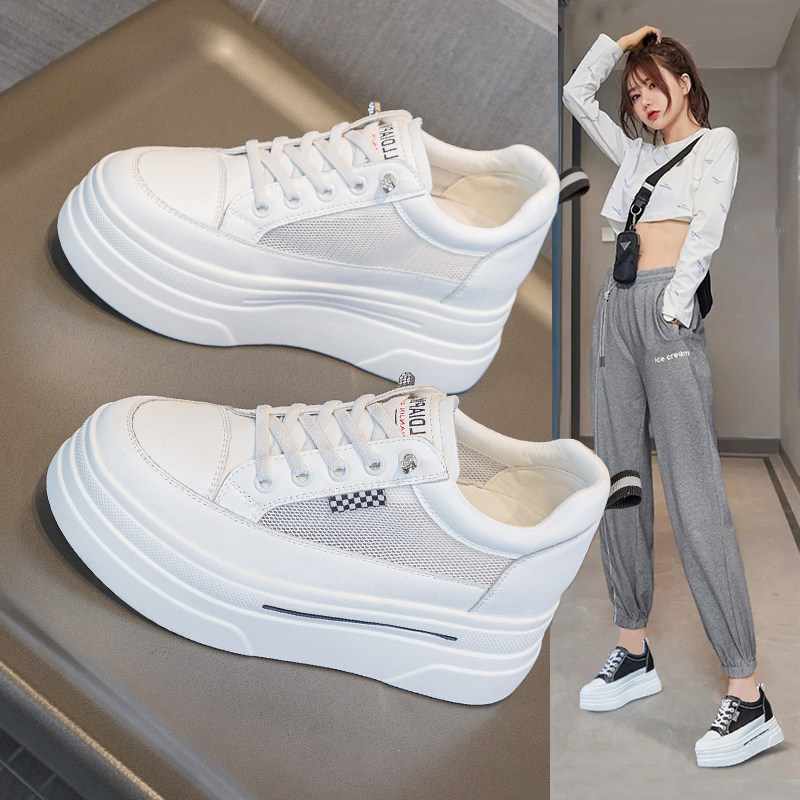 夏季薄款小白鞋女2026新款爆款厚底内增高女鞋网面透气夏天配裙子