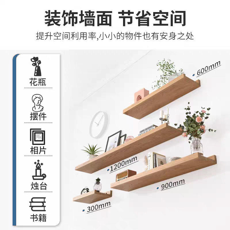 松木实木板电视柜悬空一字板墙面置物柜客厅置物架墙上装饰展示架