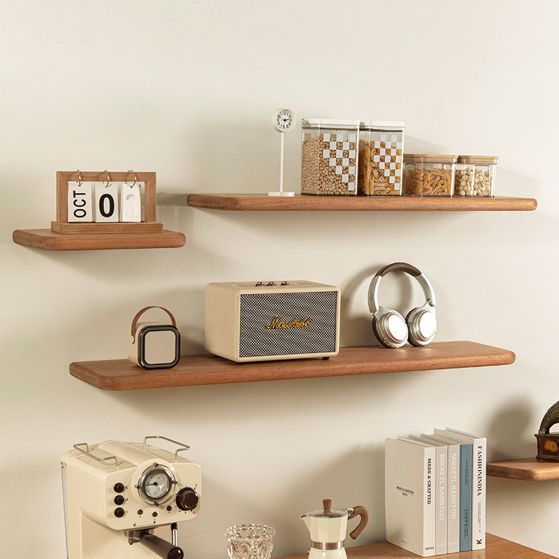 榆木实木一字板置物架卧室客厅厨房墙面悬空摆件展示架墙上层板