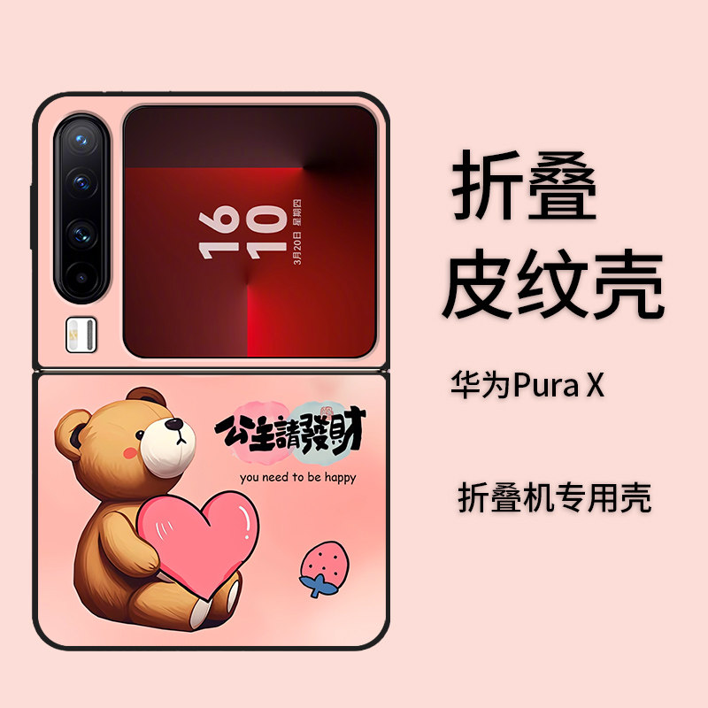 适用于华为Pura X手机壳PuraX典藏版折叠轻奢皮纹时尚卡通情侣款全包防摔高颜值男女款定制保护套ins风