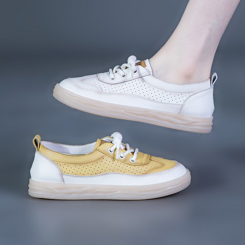 女鞋2025新款小白鞋真皮夏季镂空透气不闷脚牛筋软底女款休闲鞋