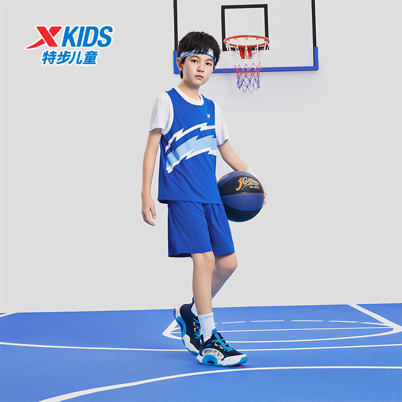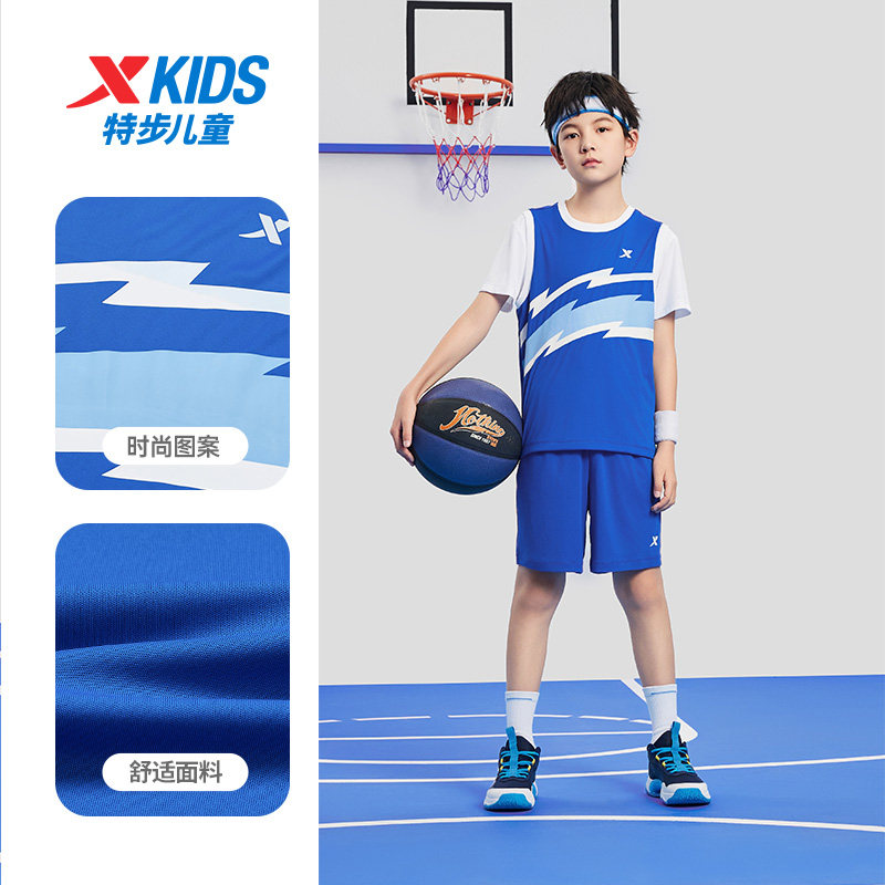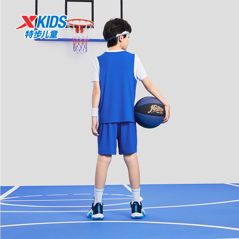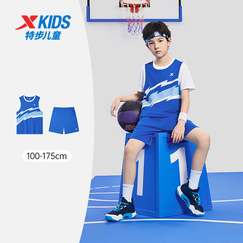 特步儿童篮球服男夏季运动套装速干透气短袖短裤2件套