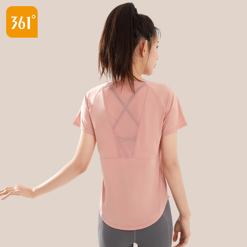 361运动上衣短袖夏季羽毛球t恤健身服粉色网纱运动服跑步瑜伽服女