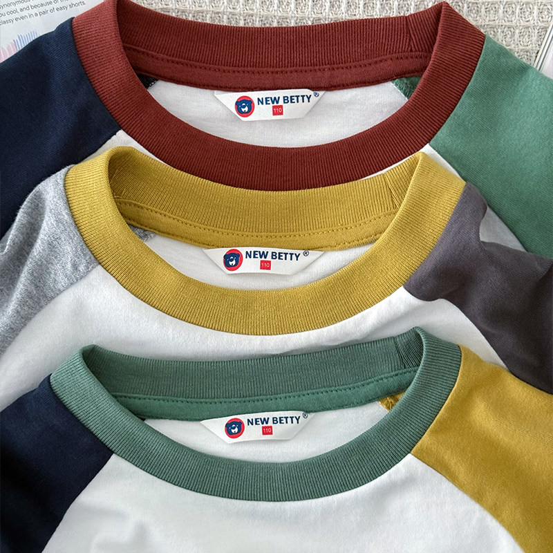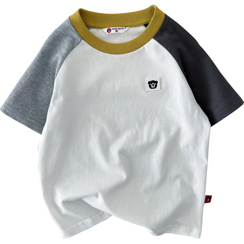 100%棉~男童短袖T恤衫儿童夏季新款纯棉半袖上衣洋气撞色插肩袖