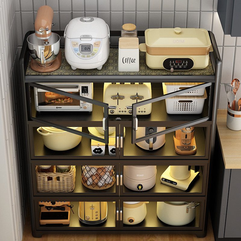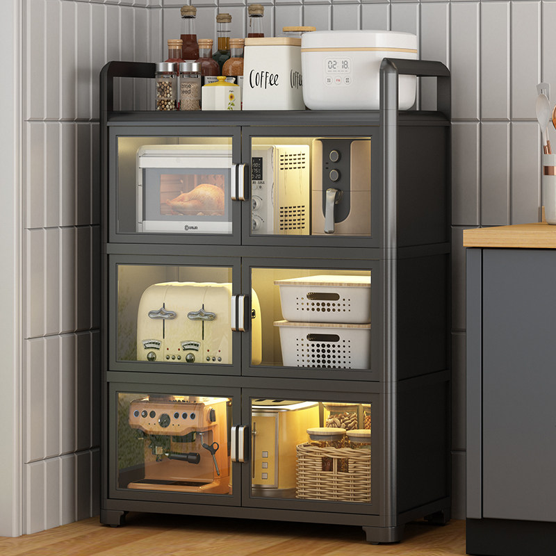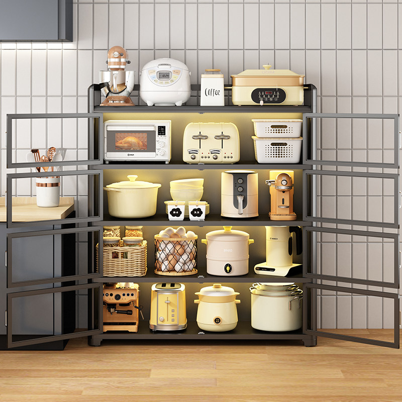 厨房多功能置物架橱柜带柜门落地多层靠墙放微波炉碗碟收纳储物架