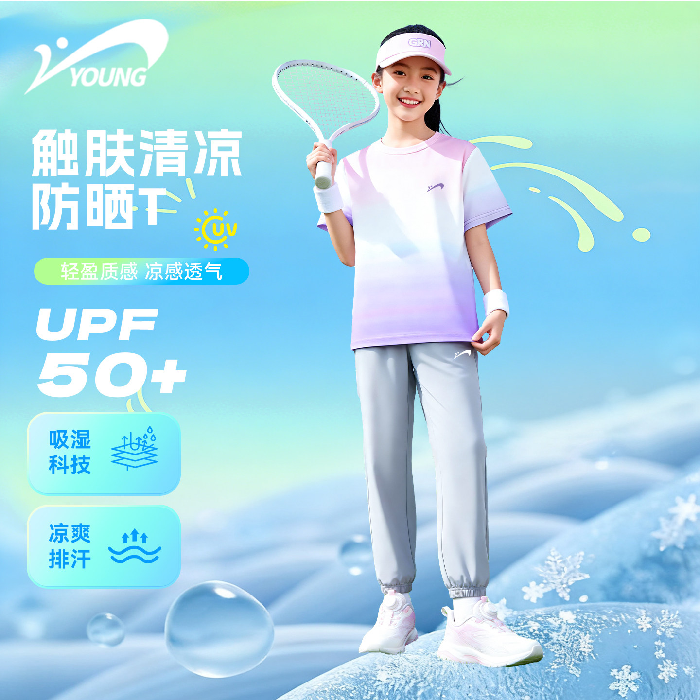 贵人鸟童装运动套装女童2026新款儿童凉感夏装女孩透气短袖t恤夏