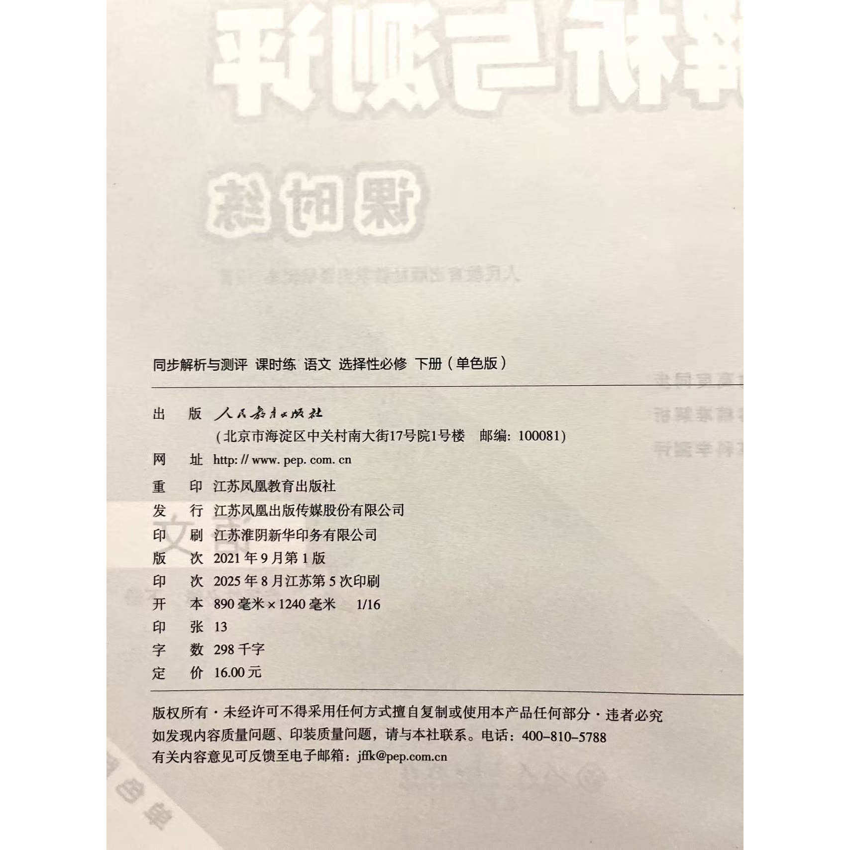 2026春同步解析与测评课时练语文选择性必修下册单色版人教版含评价作业及检测卷人民教育出版社高中同步教辅答案扫码获取