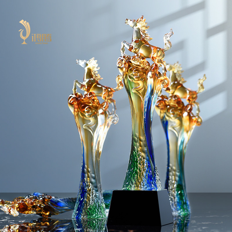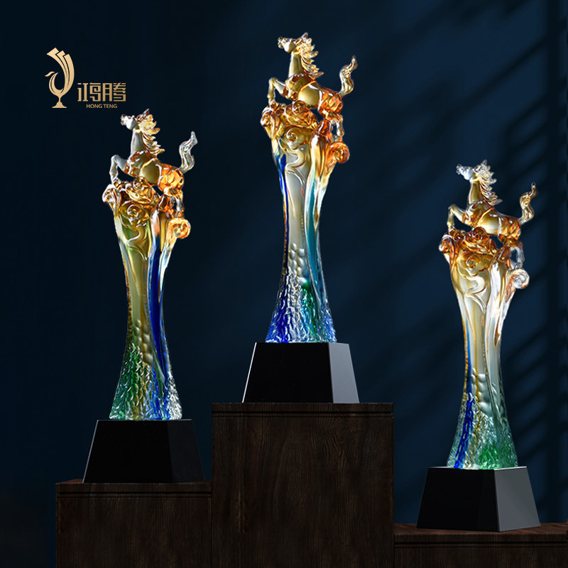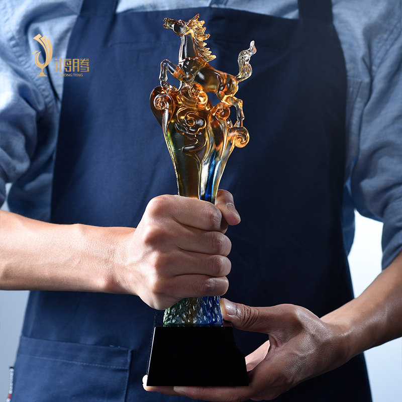 马琉璃奖杯定制定做精品纪念品水晶奖杯年会优秀员工制作免费刻字