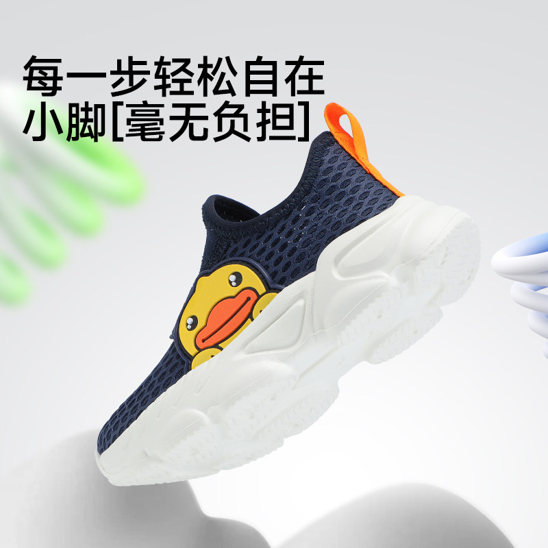 BDuck小黄鸭童鞋男童运动鞋夏季单网儿童镂空网鞋透气网面女童鞋