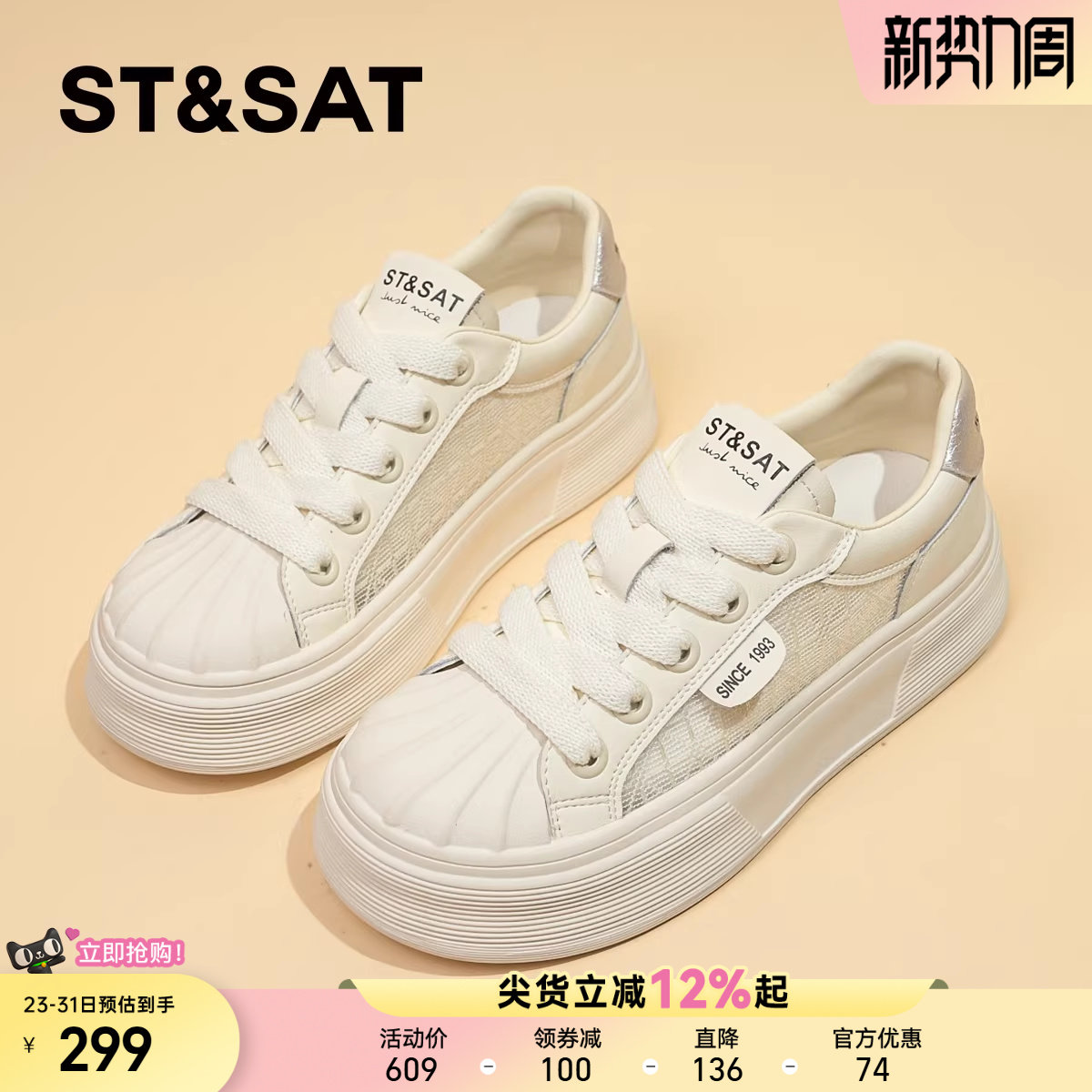 星期六厚底贝壳头小白鞋女2025年夏季新款透气网面鞋女士运动板鞋