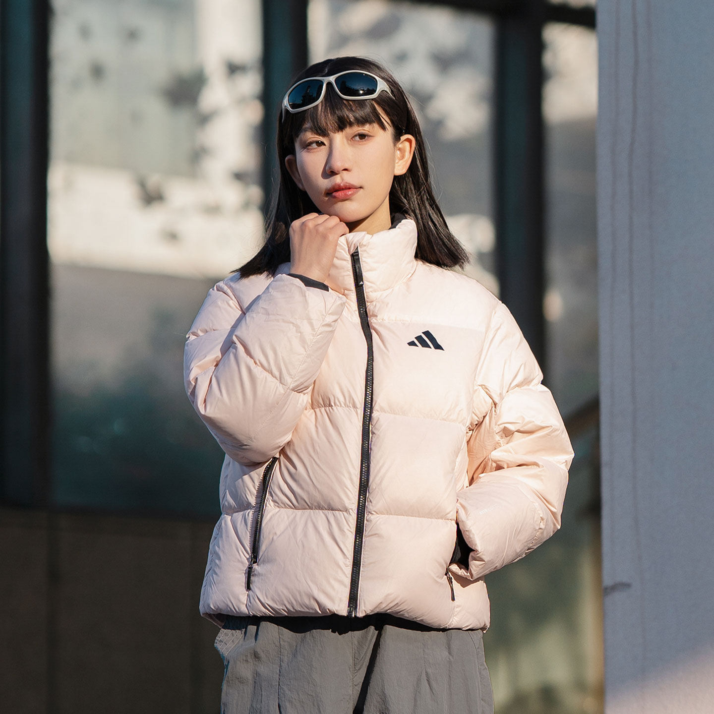 阿迪达斯女款羽绒服2026春季新款运动粉色立领运动服保暖羽绒外套