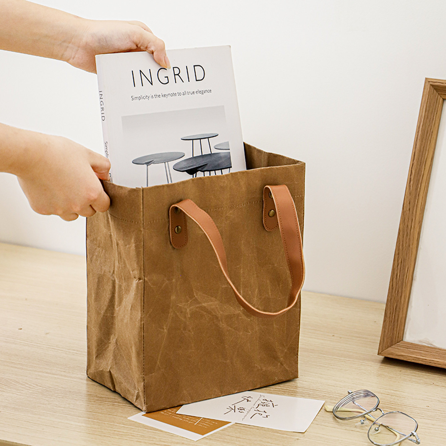 简约加厚牛皮纸收纳袋手提补习袋购物袋文件袋环保纸袋便当饭盒袋