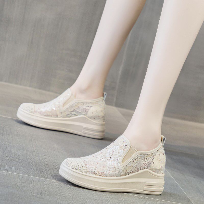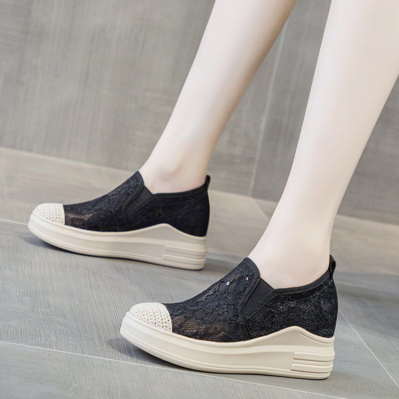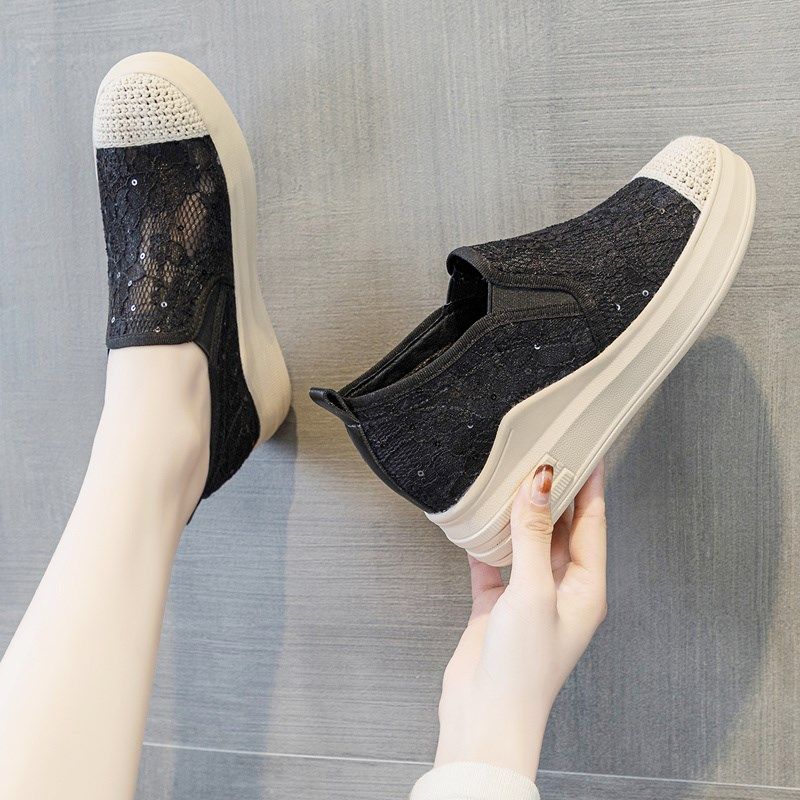 渔夫鞋女2024新款夏天透气一脚蹬内增高女鞋网面厚底休闲懒人网鞋