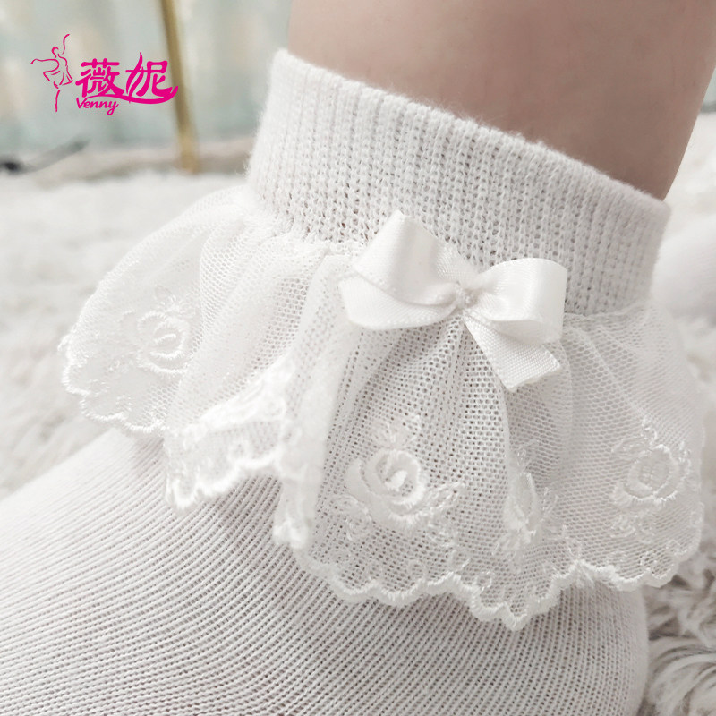 薇妮拉丁舞女童比赛专用儿童白袜子女夏专业舞蹈袜防滑纯色短袜