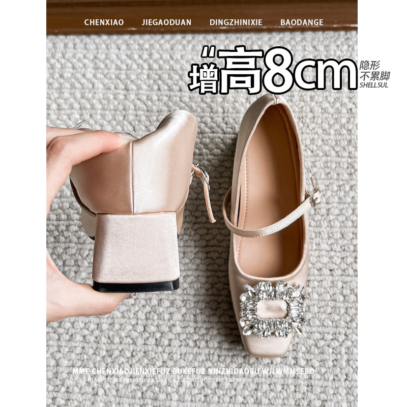 不累脚!2026春夏隐形内增高8CM粗跟玛丽珍小个子浅口高跟单鞋女